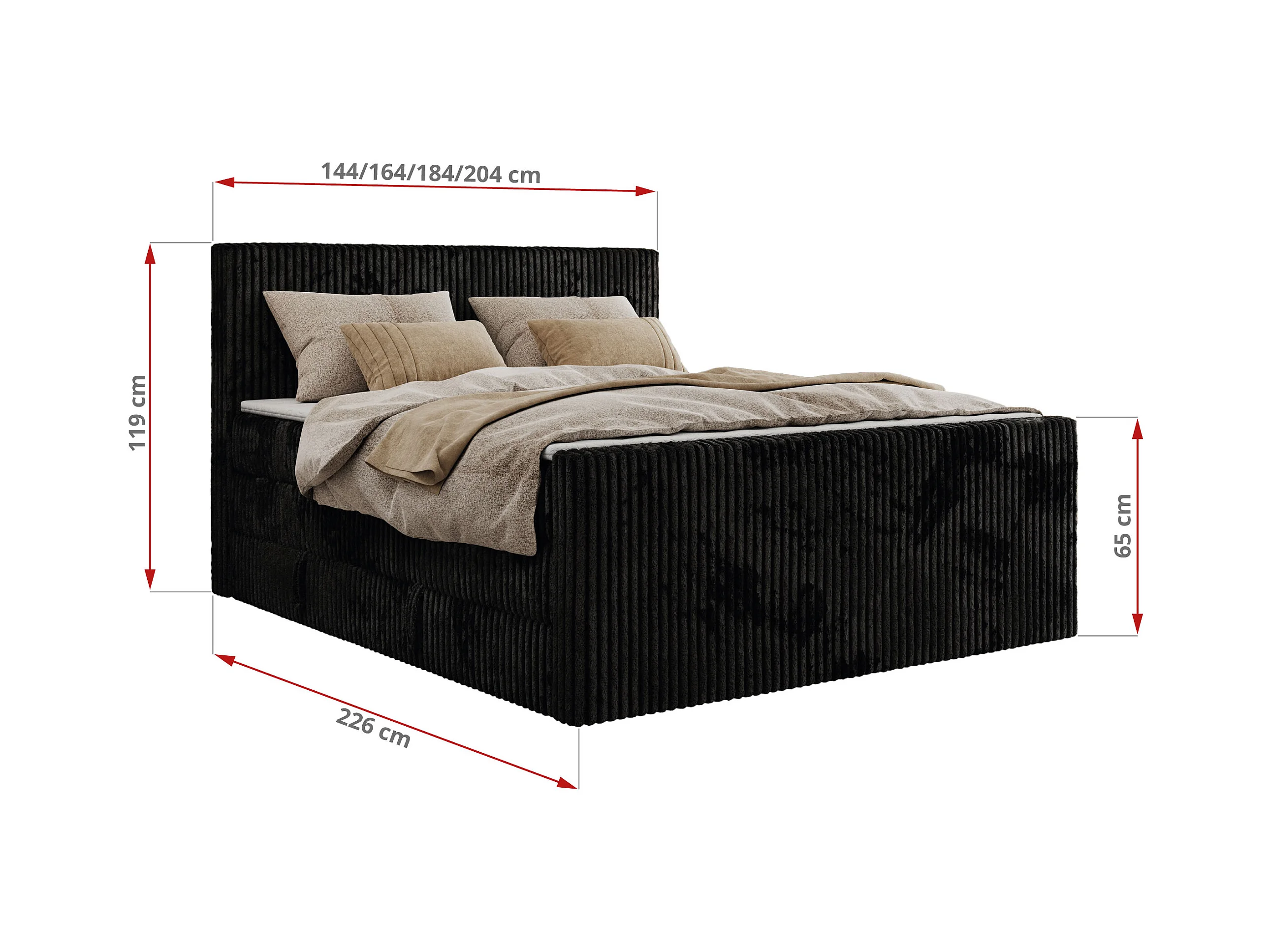 Boxspringbett TILIANO KING DUO, mit zwei Bettkästen, Cord Bett Multipocket-Matratze - 200x200 cm - H3 - Schwarz Cord