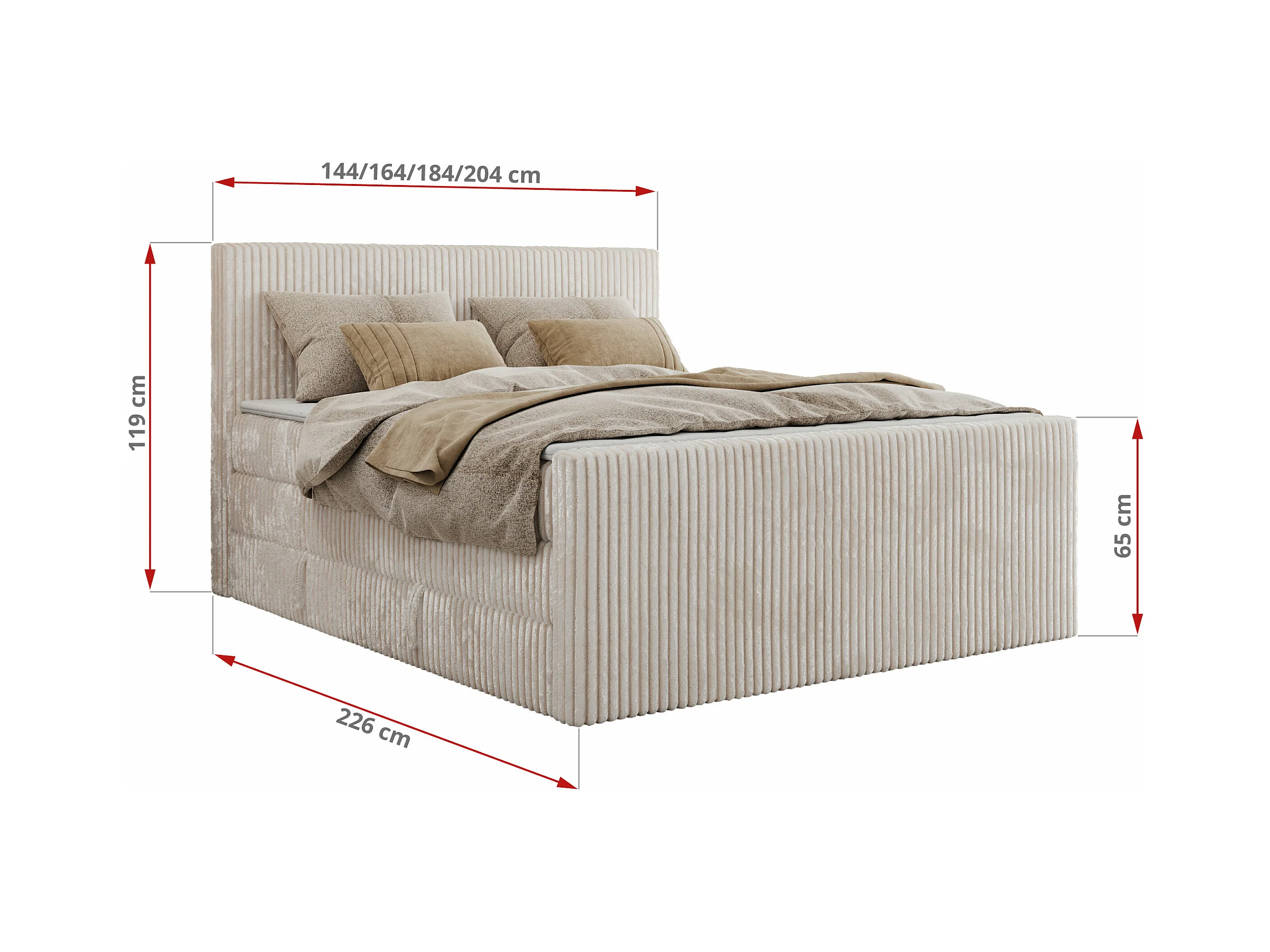 Boxspringbett TILIANO KING DUO, mit zwei Bettkästen, Cord Bett Multipocket-Matratze - 200x200 cm - H4 - Beige Cord