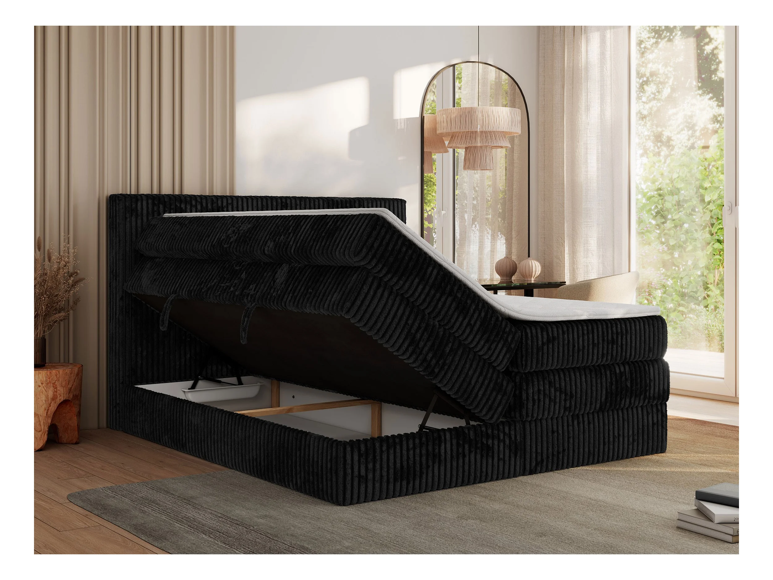 Boxspringbett TILIANO KING, Multipocket-Matratze, Cord Bett, Kopfteil und zwei Bettkästen - 160x200 cm - H3 - Schwarz Cord