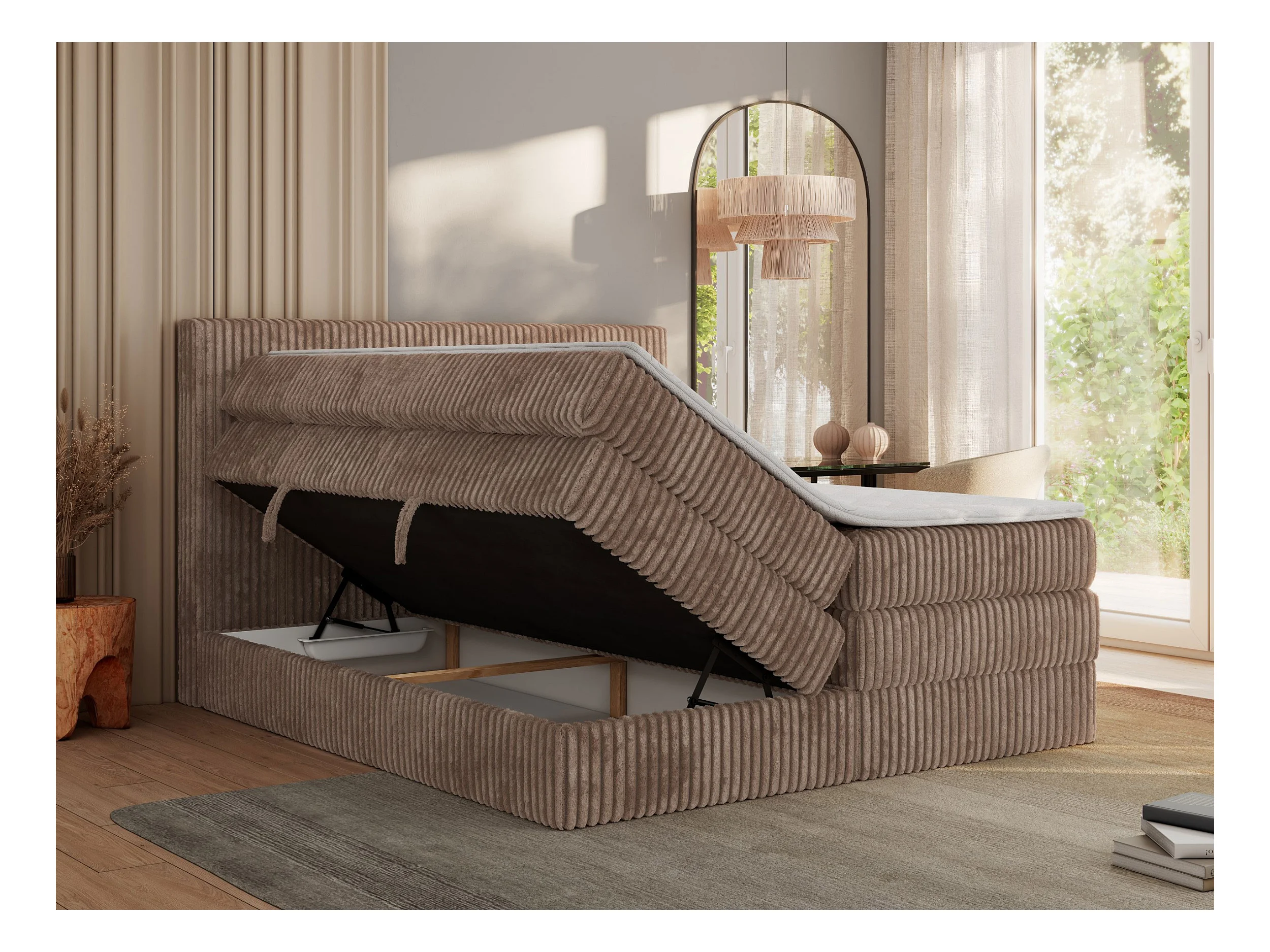 Boxspringbett TILIANO KING, Multipocket-Matratze, Cord Bett, Kopfteil und zwei Bettkästen - 180x200 cm - H3 - Braun Cord