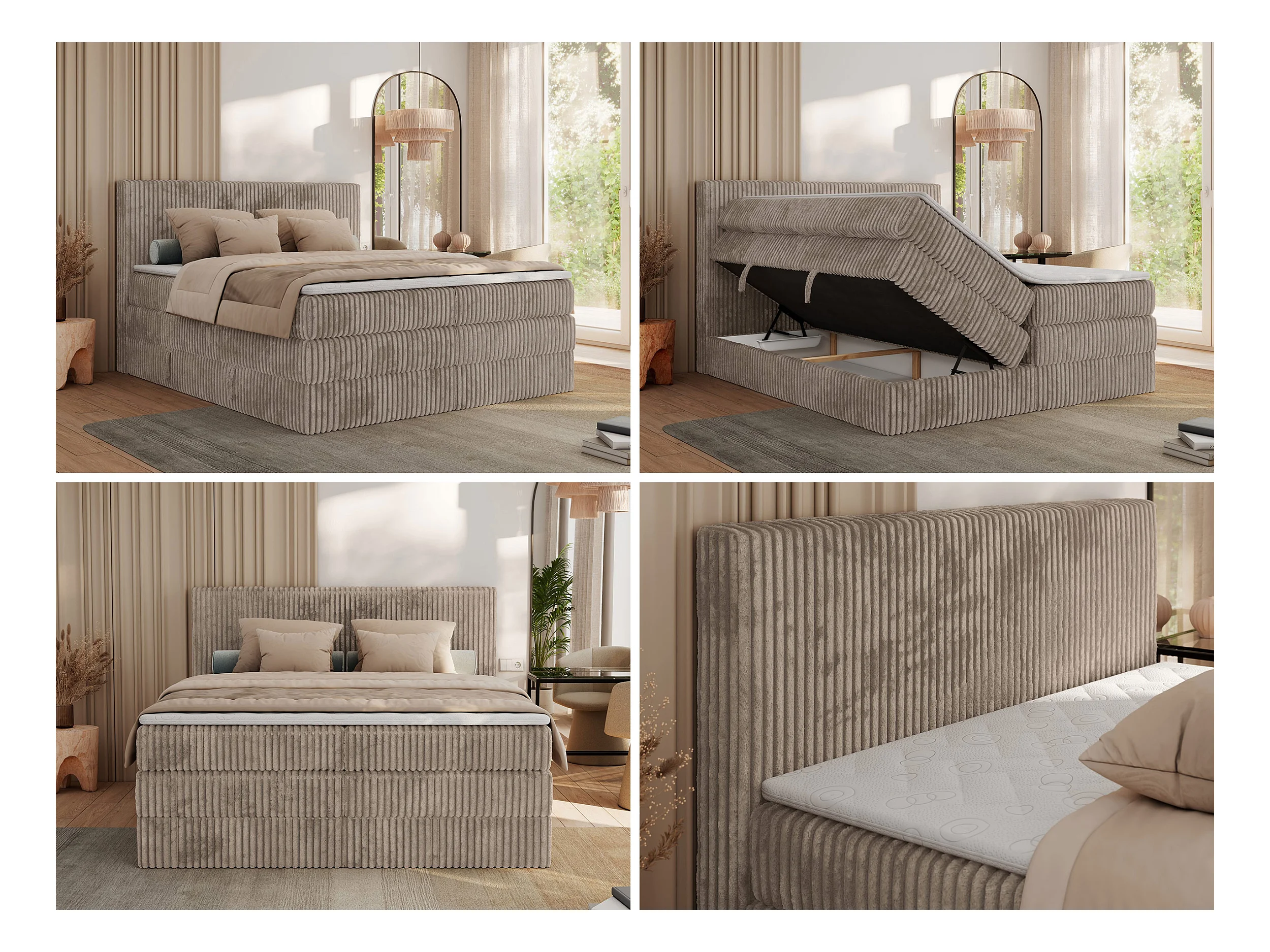 Boxspringbett TILIANO KING, Multipocket-Matratze, Cord Bett, Kopfteil und zwei Bettkästen - 180x200 cm - H3 - Hellbraun Cord