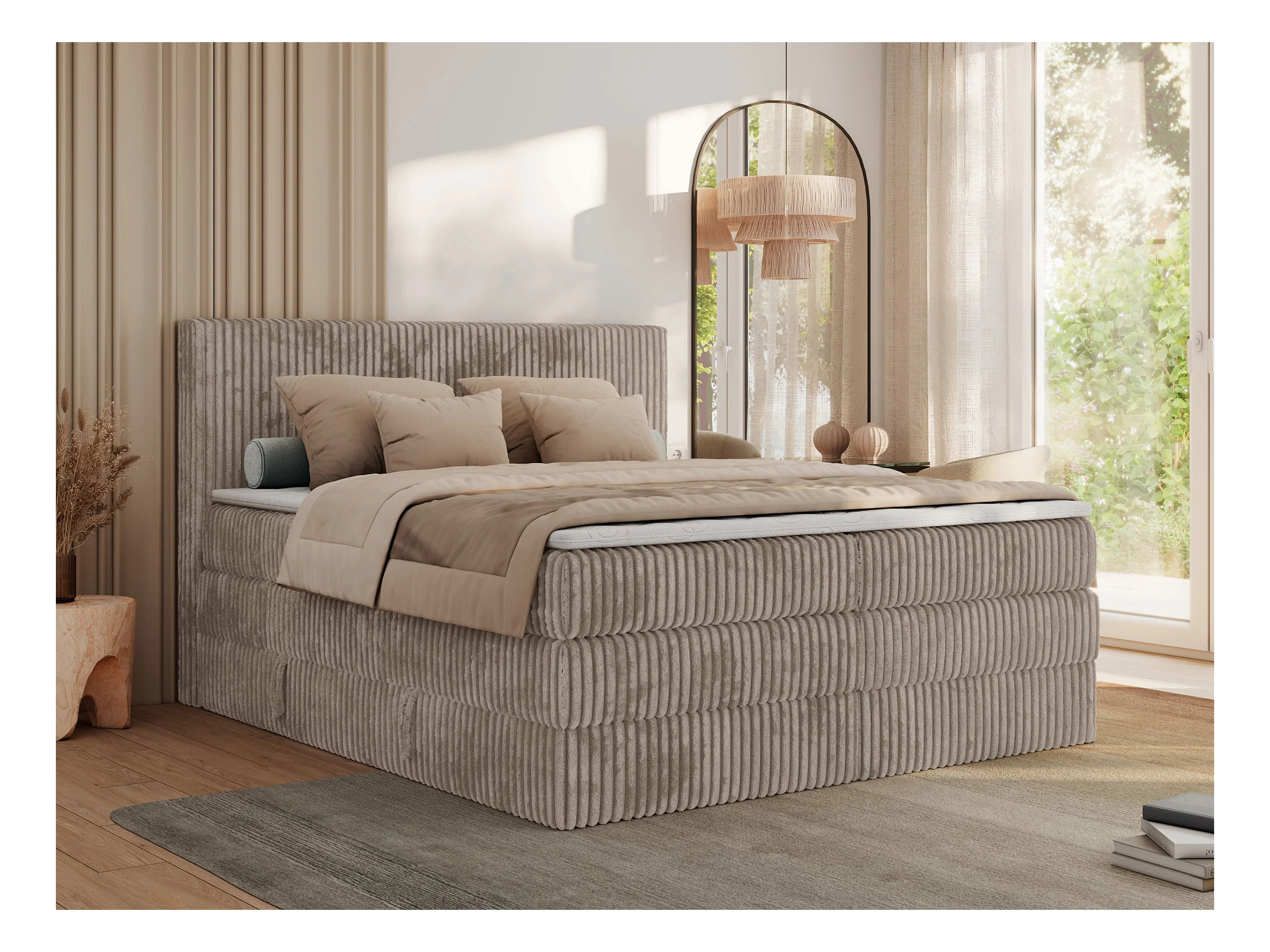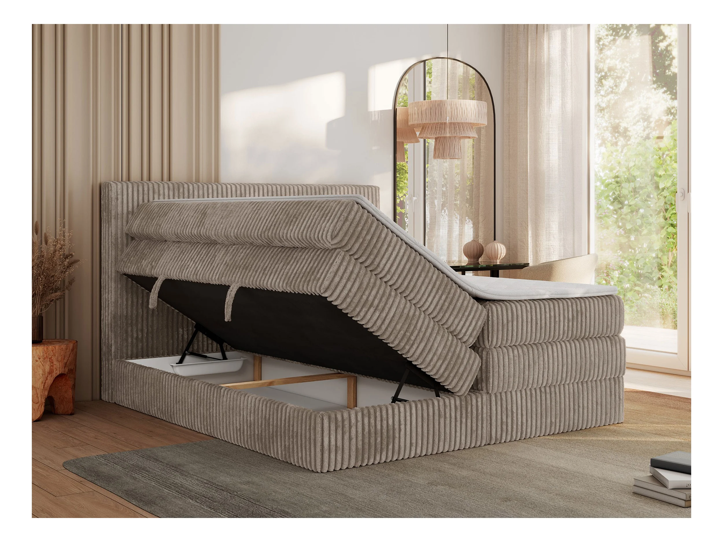 Boxspringbett TILIANO KING, Multipocket-Matratze, Cord Bett, Kopfteil und zwei Bettkästen - 180x200 cm - H4 - Hellbraun Cord