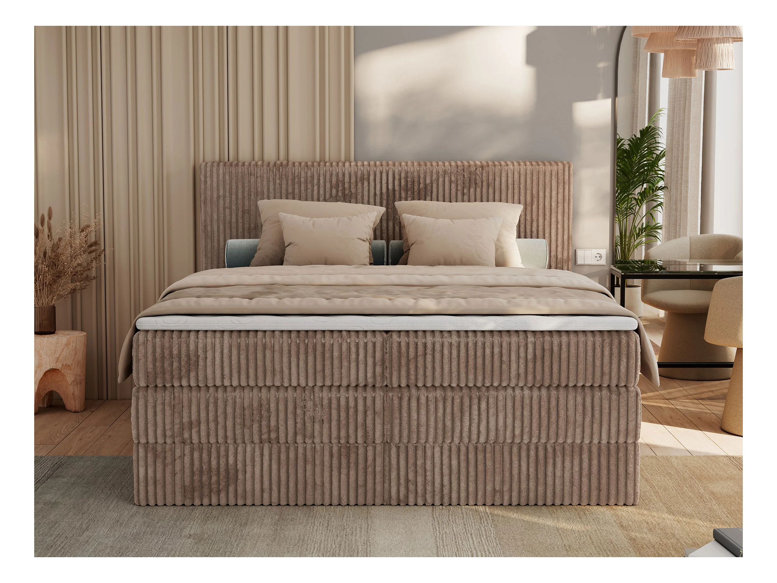 Boxspringbett TILIANO KING, Multipocket-Matratze, Cord Bett, Kopfteil und zwei Bettkästen - 200x200 cm - H3 - Braun Cord