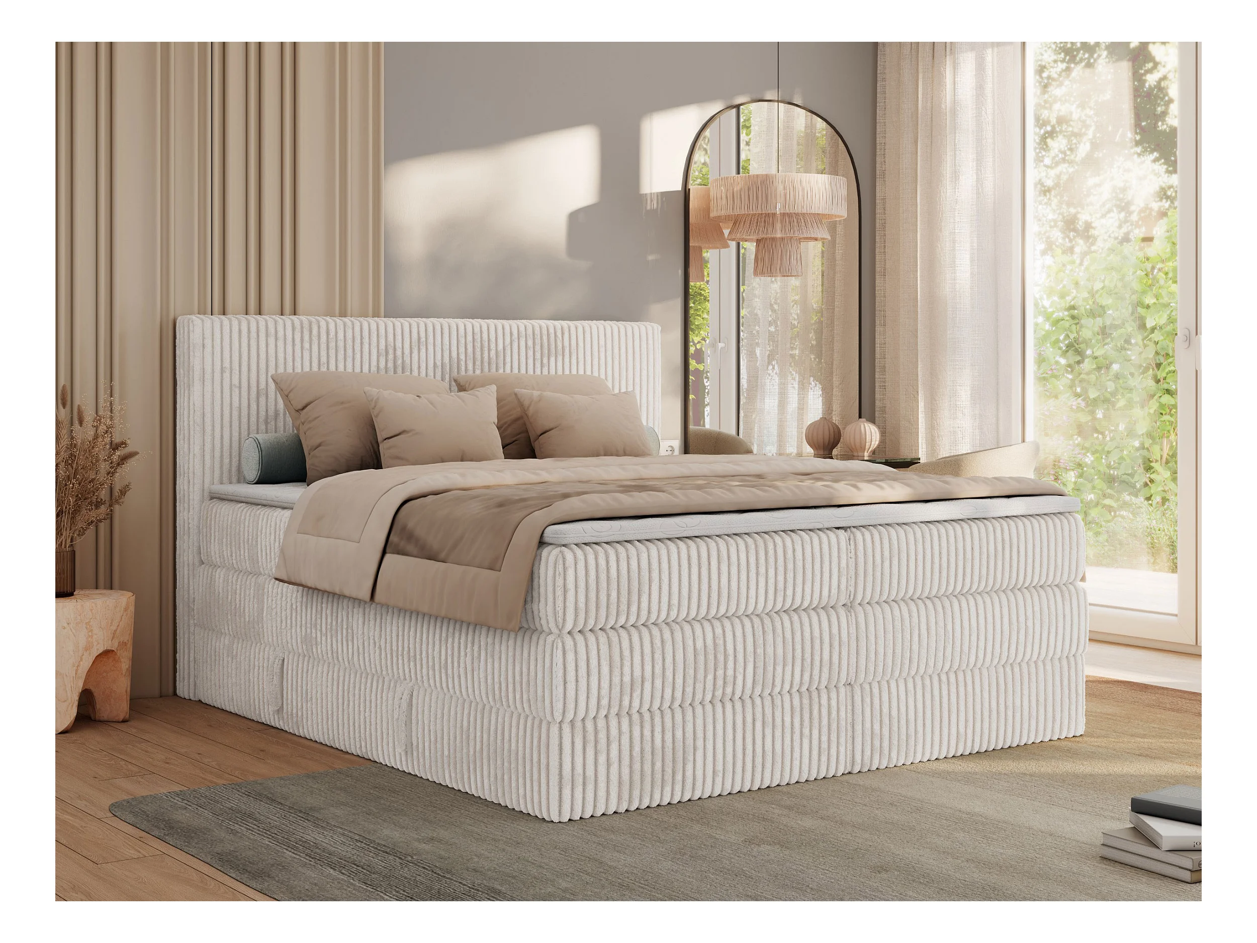 Boxspringbett TILIANO KING, Multipocket-Matratze, Cord Bett, Kopfteil und zwei Bettkästen - 200x200 cm - H4 - Beige Cord