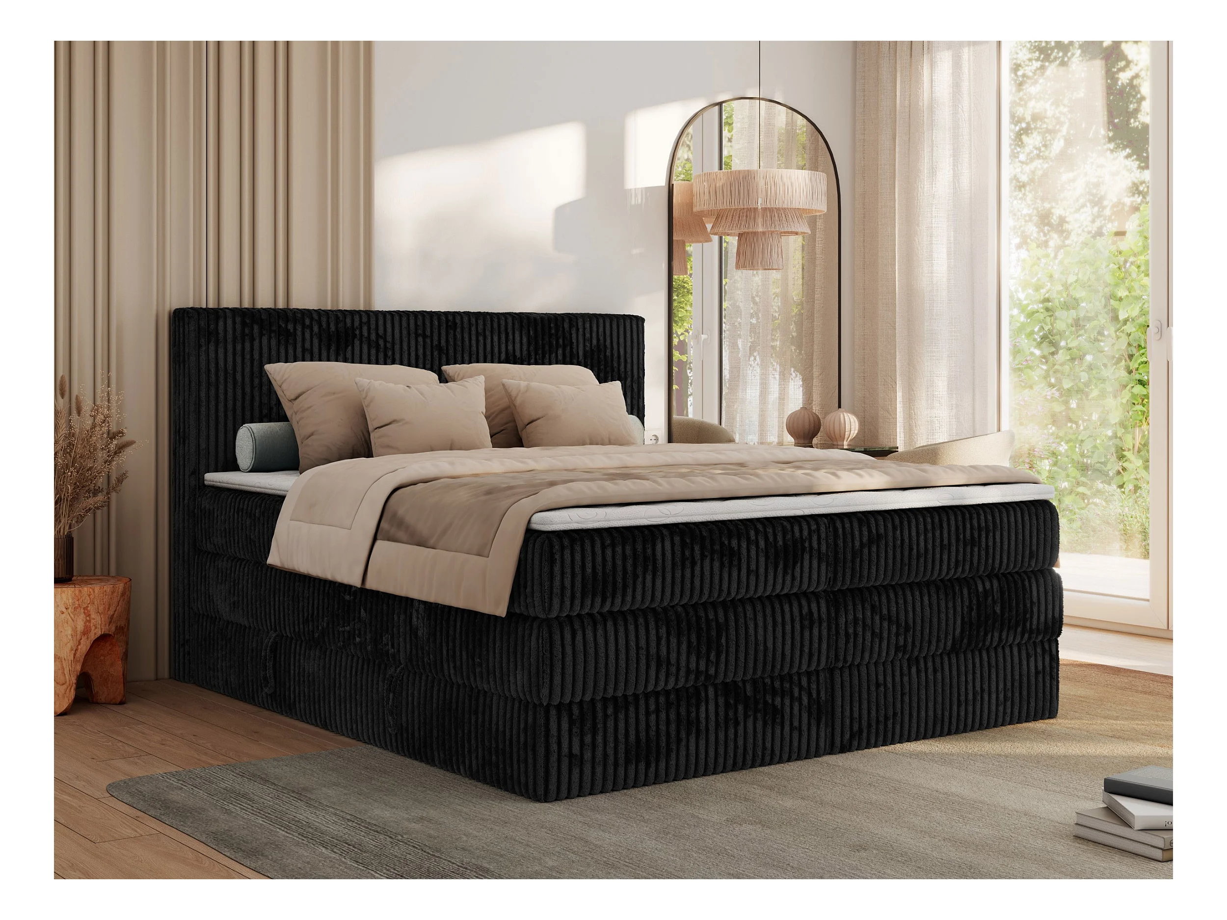 Boxspringbett TILIANO KING, Multipocket-Matratze, Cord Bett, Kopfteil und zwei Bettkästen - 200x200 cm - H4 - Schwarz Cord