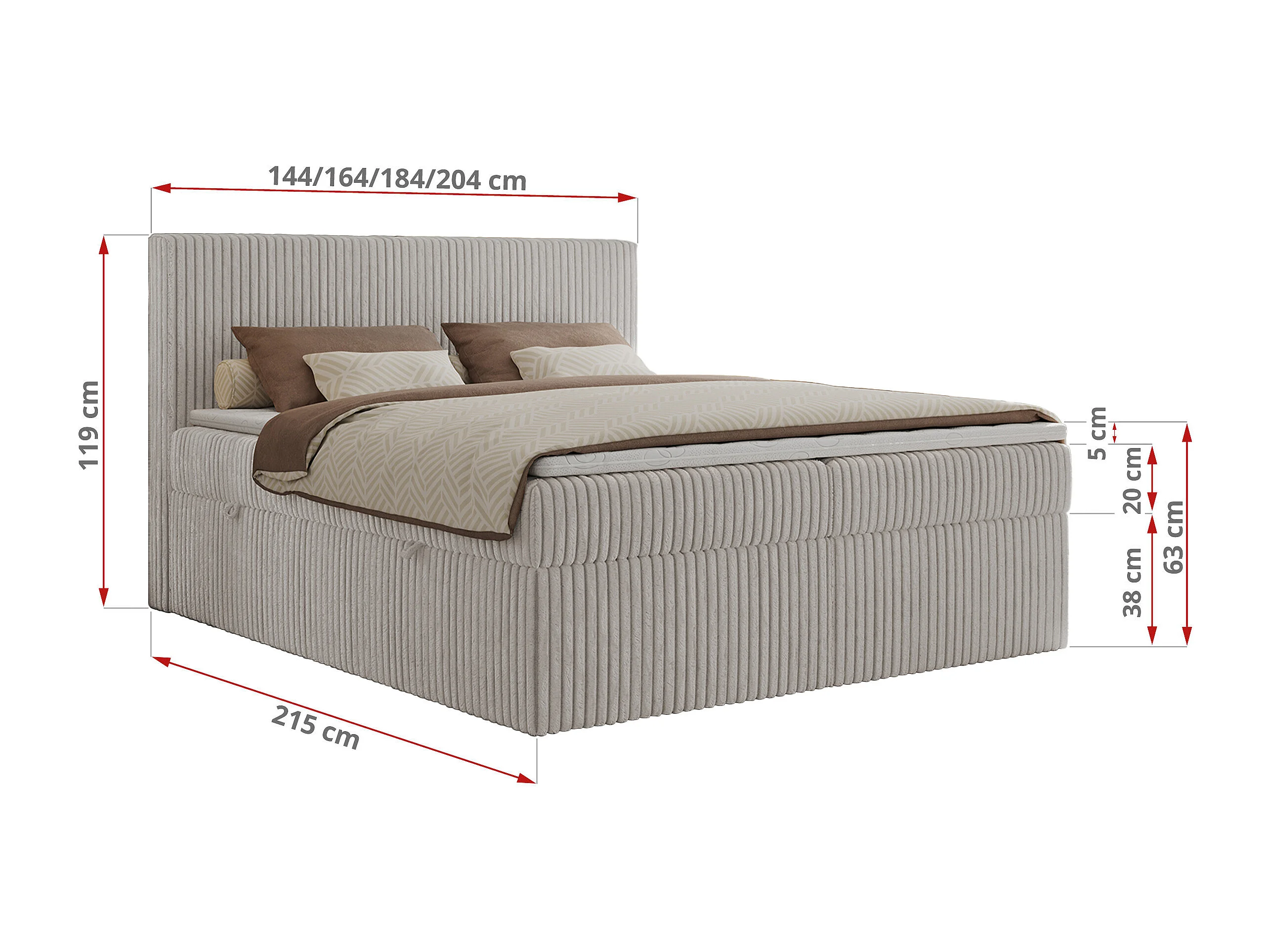 Boxspringbett TILIANO mit Kopfteil und zwei Bettkästen, Cord Bett - 140x200 cm - H3 - Hellgrau Cord