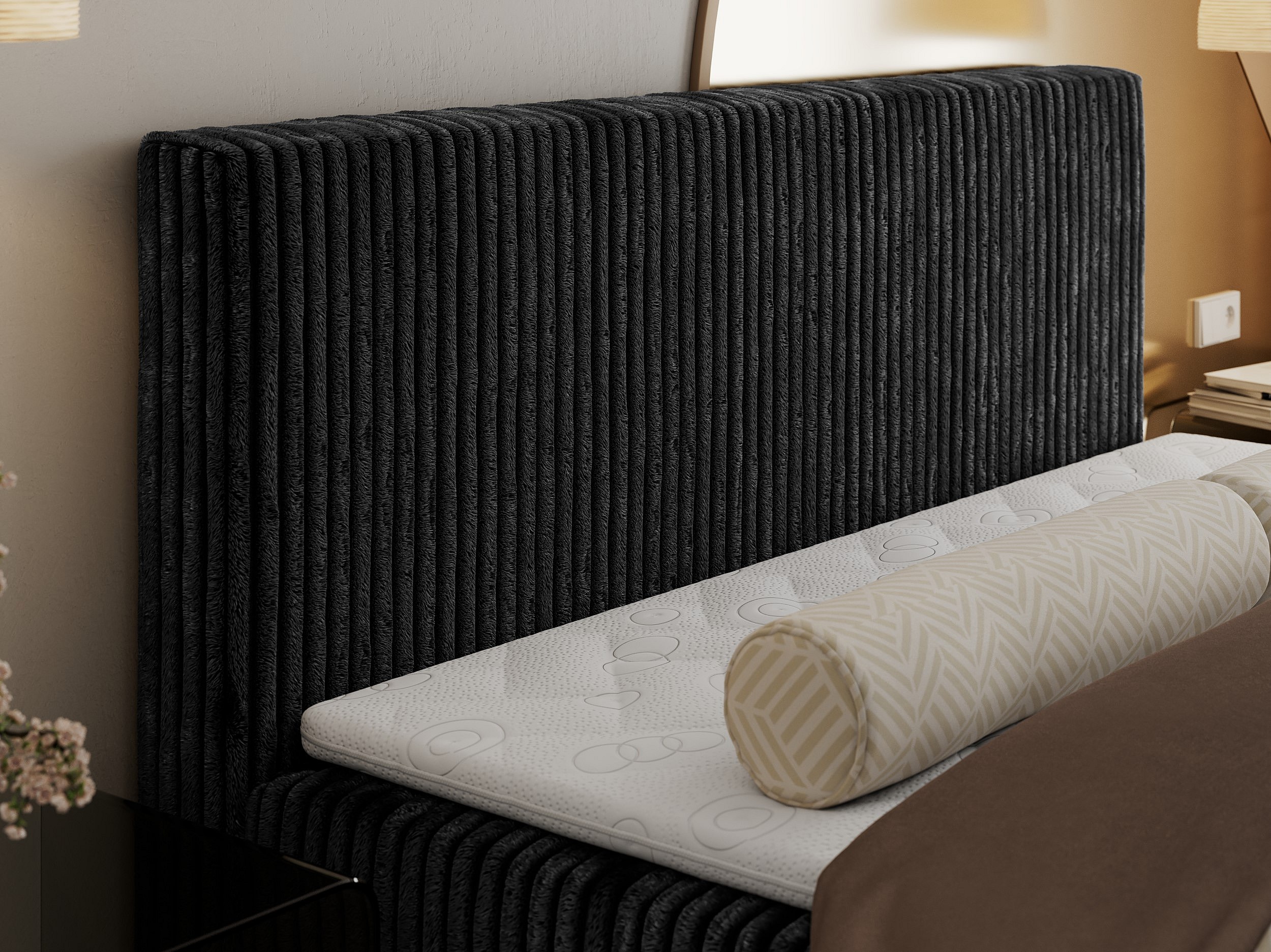 Boxspringbett TILIANO mit Kopfteil und zwei Bettkästen, Cord Bett - 140x200 cm - H3 - Schwarz Cord