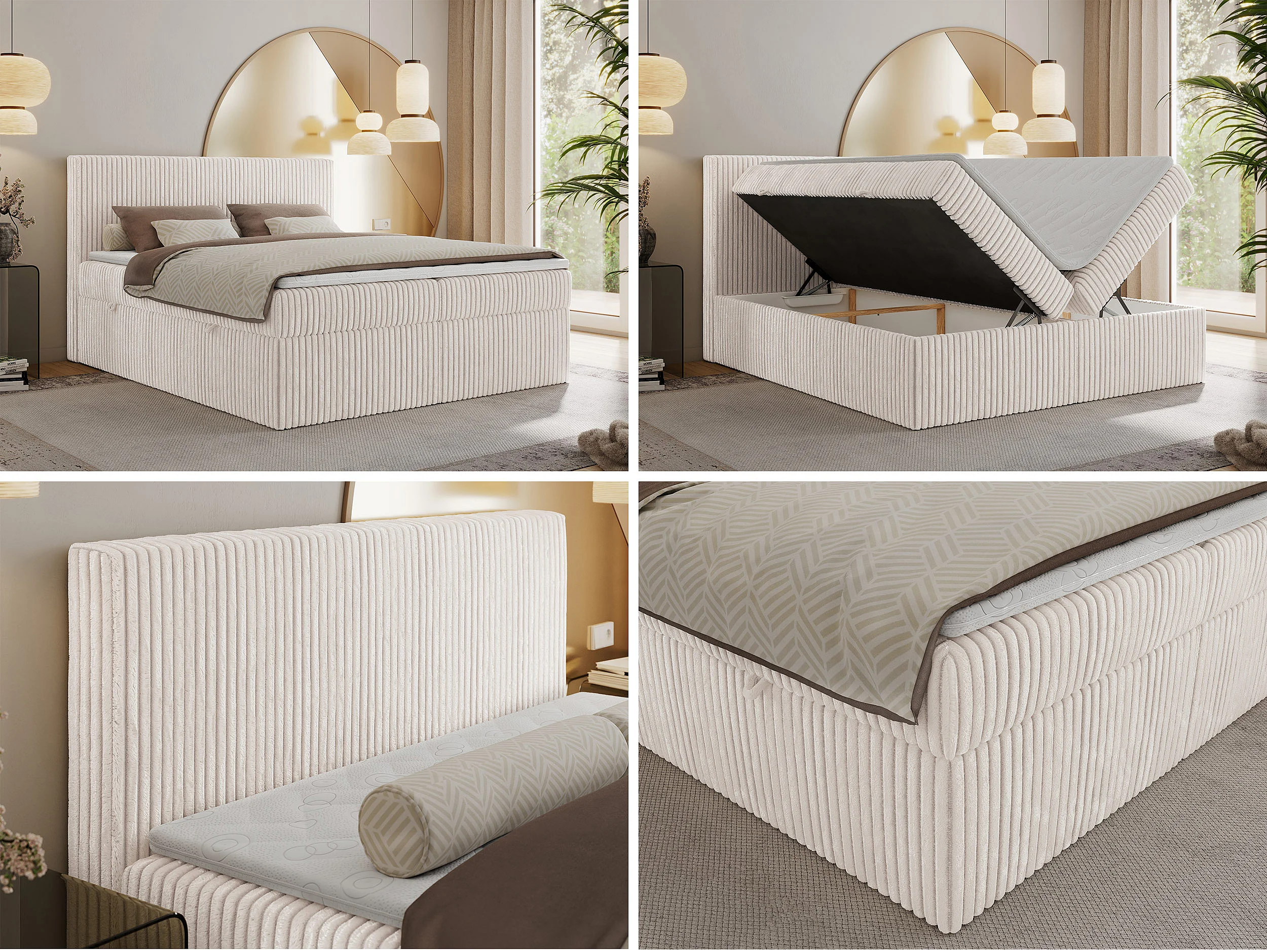 Boxspringbett TILIANO mit Kopfteil und zwei Bettkästen, Cord Bett - 140x200 cm - H4 - Beige Cord