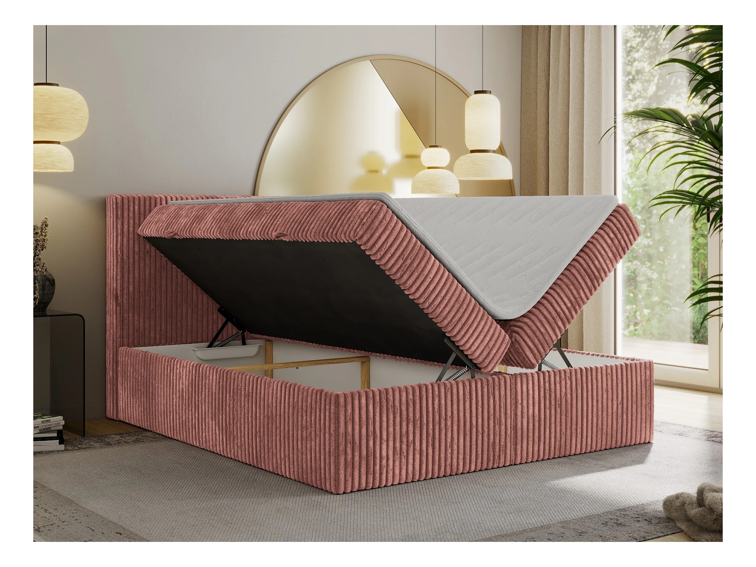 Boxspringbett TILIANO mit Kopfteil und zwei Bettkästen, Cord Bett - 140x200 cm - H4 - Rosa Cord