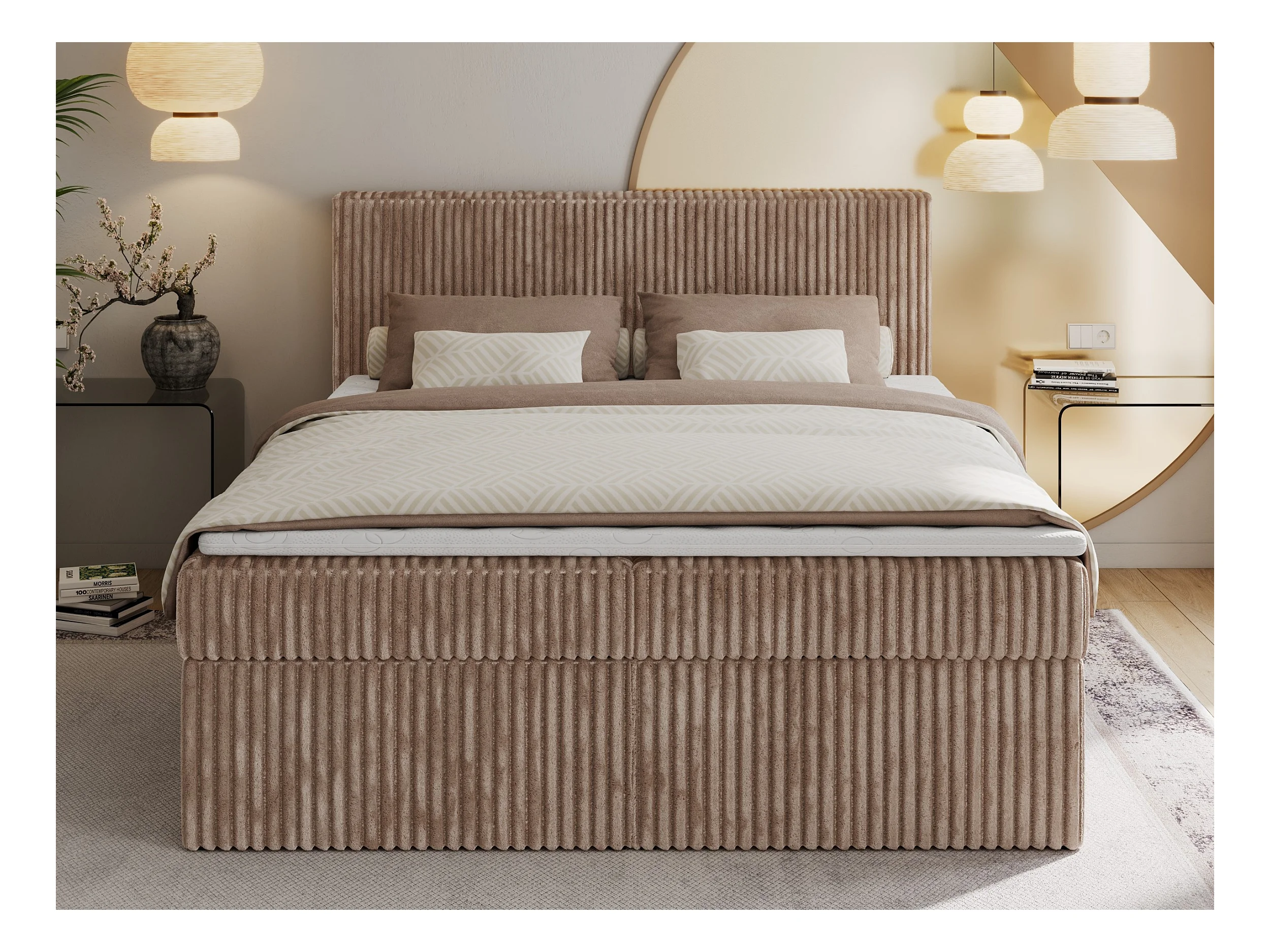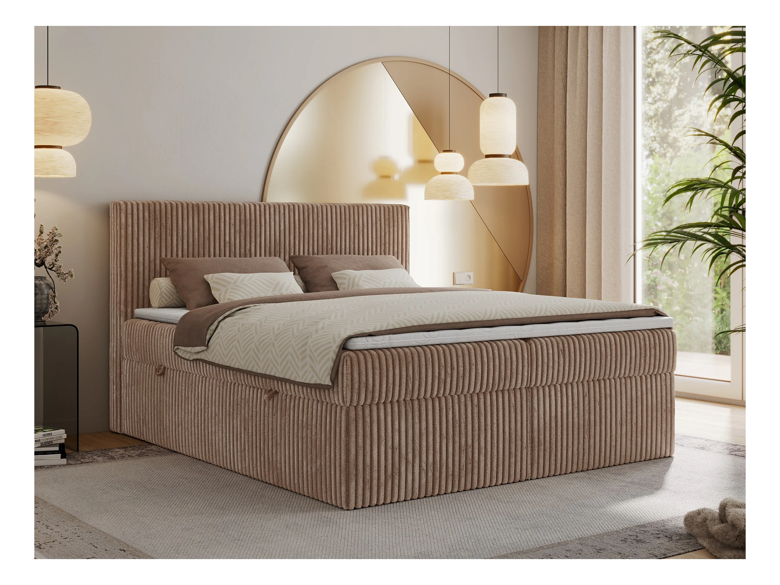 Boxspringbett TILIANO mit Kopfteil und zwei Bettkästen, Cord Bett - 180x200 cm - H3 - Braun Cord