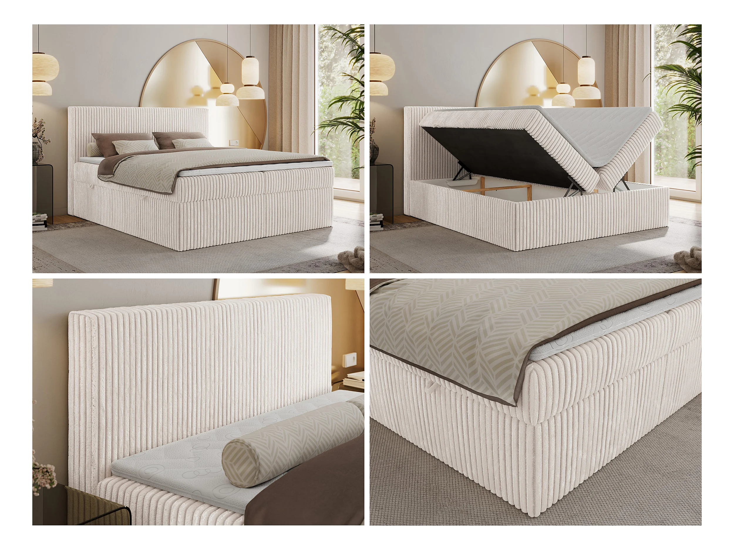 Boxspringbett TILIANO mit Kopfteil und zwei Bettkästen, Cord Bett - 180x200 cm - H4 - Beige Cord