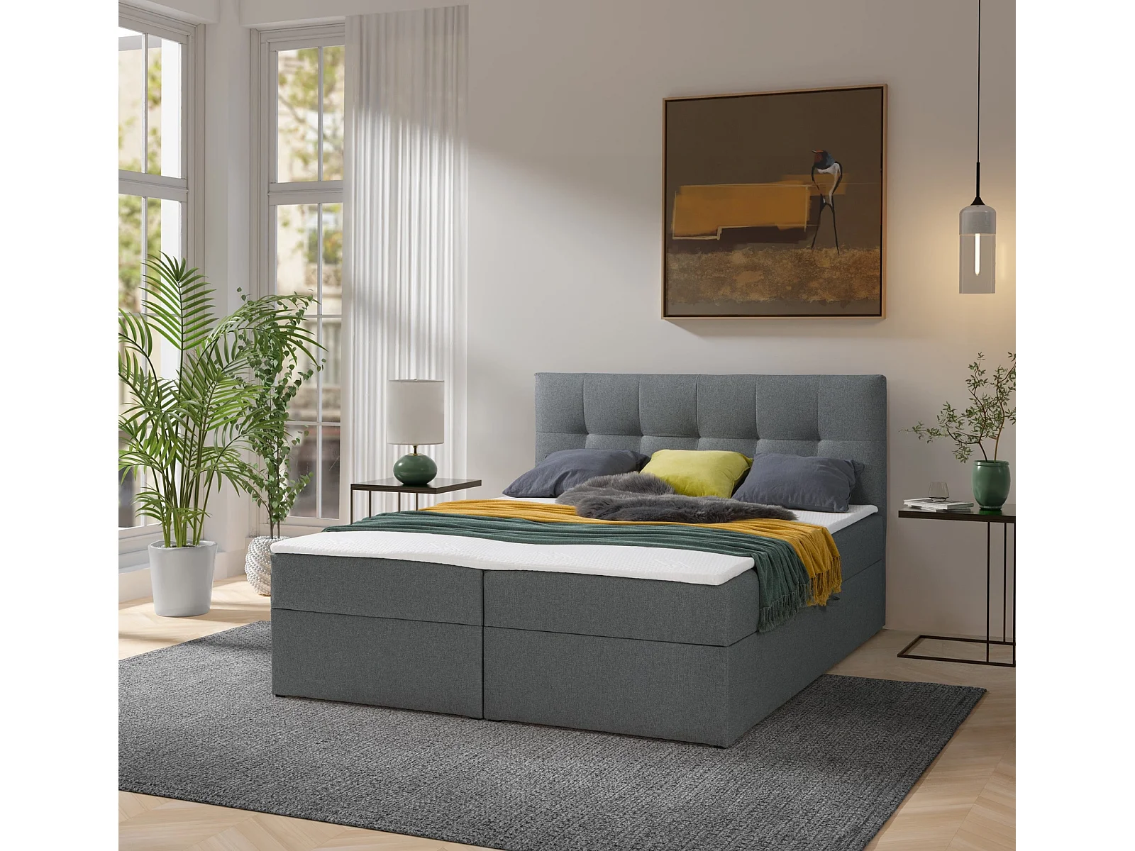 Boxspringbett toronto - 160x200 cm dunkelgrau herbi 30 - webstoff bettkasten