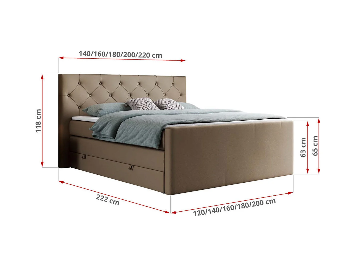 Boxspringbett VELEN KING - Doppelbett mit gestepptem Kopfteil, zwei Multipocket-Matratzen, Polsterbett mit Kopfstütze - 120x200 cm - H3 - Braun Kunstleder
