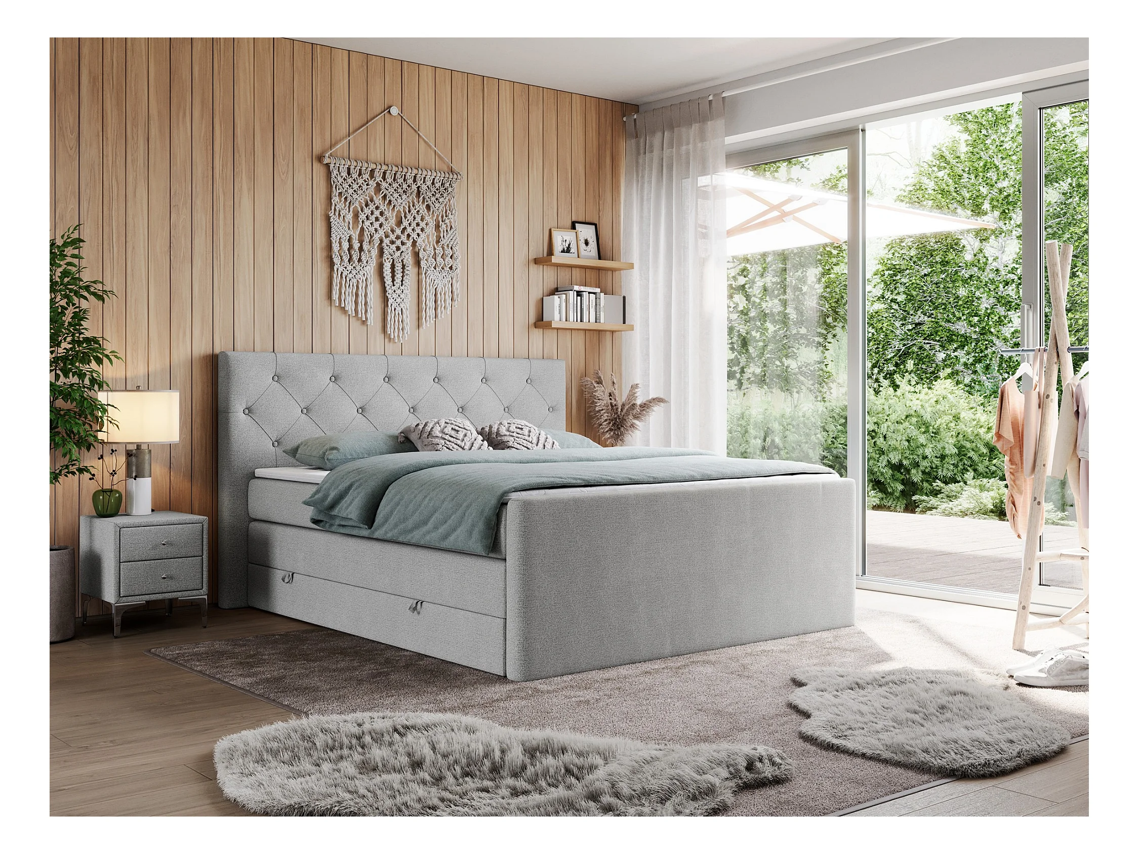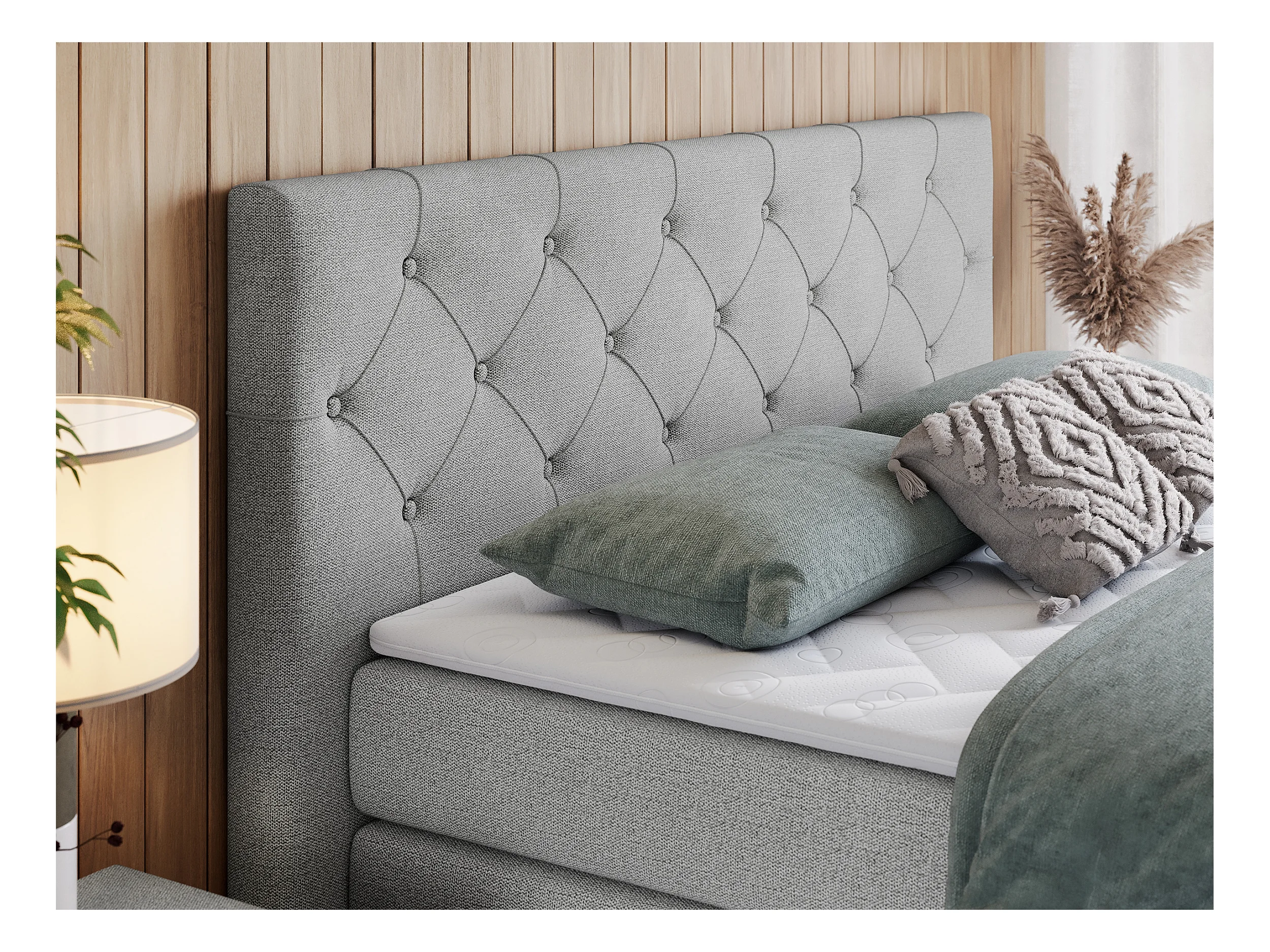 Boxspringbett VELEN KING - Doppelbett mit gestepptem Kopfteil, zwei Multipocket-Matratzen, Polsterbett mit Kopfstütze - 120x200 cm - H3 - Hellgrau Strukture