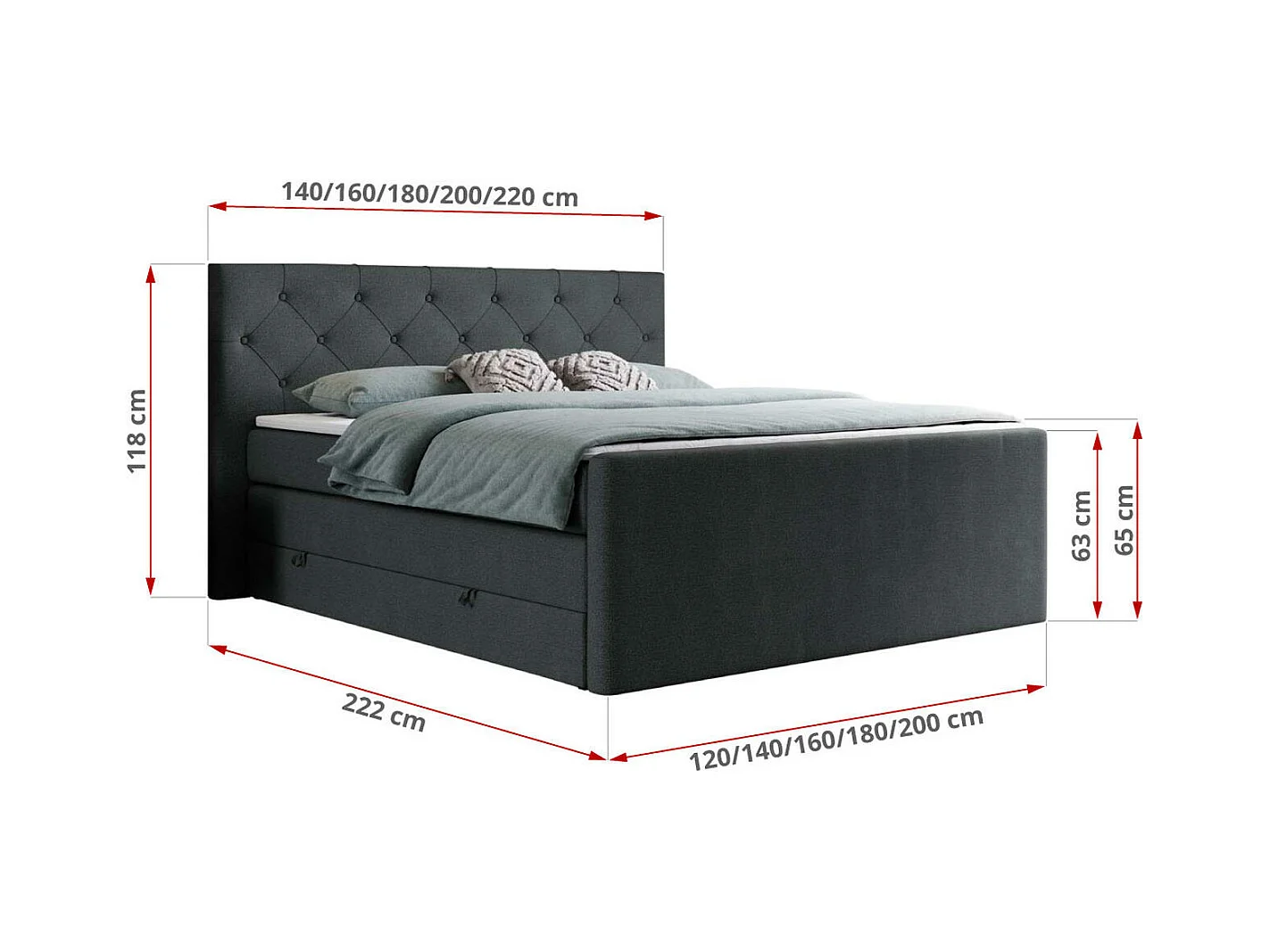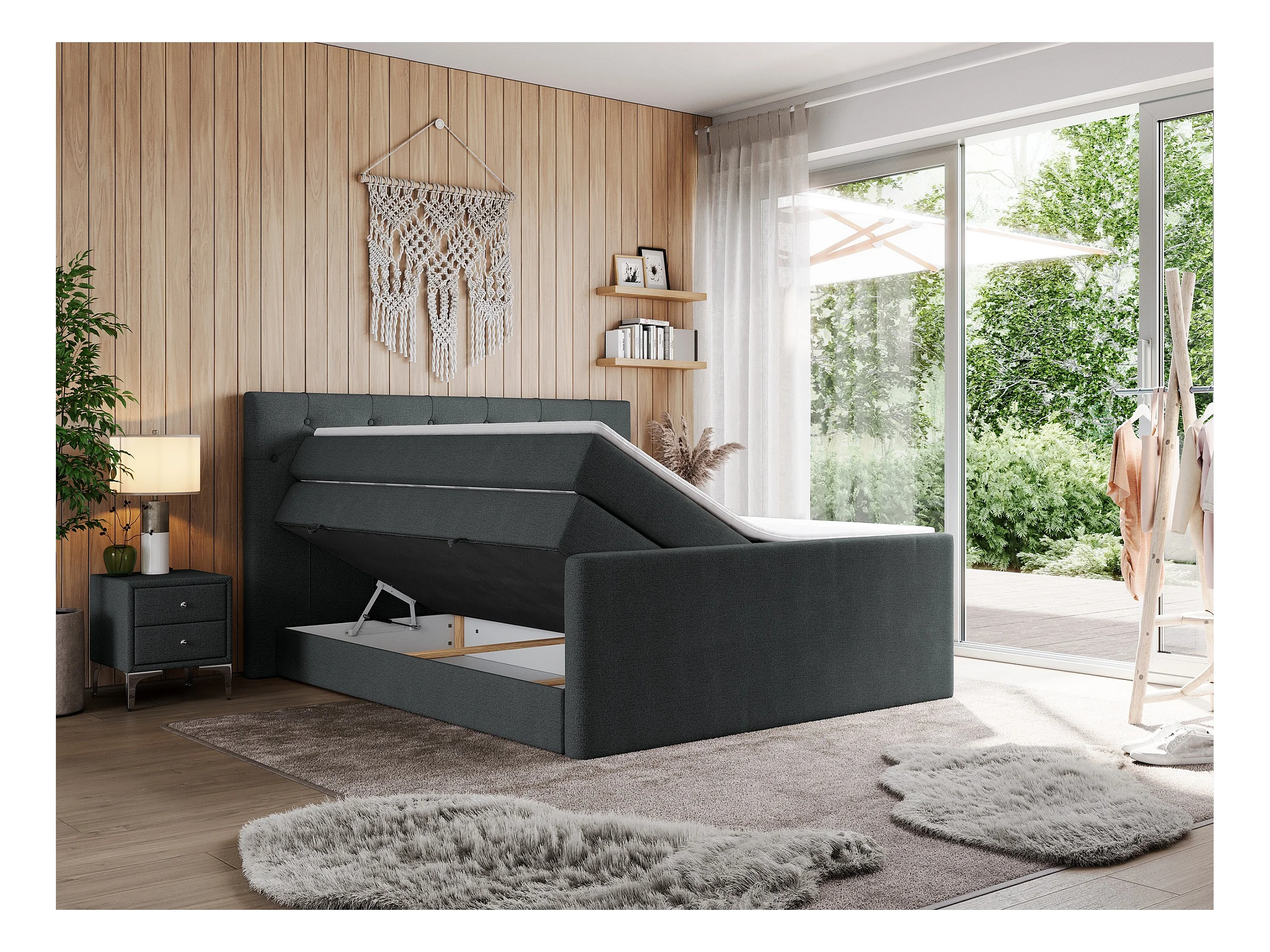 Boxspringbett VELEN KING - Doppelbett mit gestepptem Kopfteil, zwei Multipocket-Matratzen, Polsterbett mit Kopfstütze - 140x200 cm - H3 - Dunkelgrau Strukture