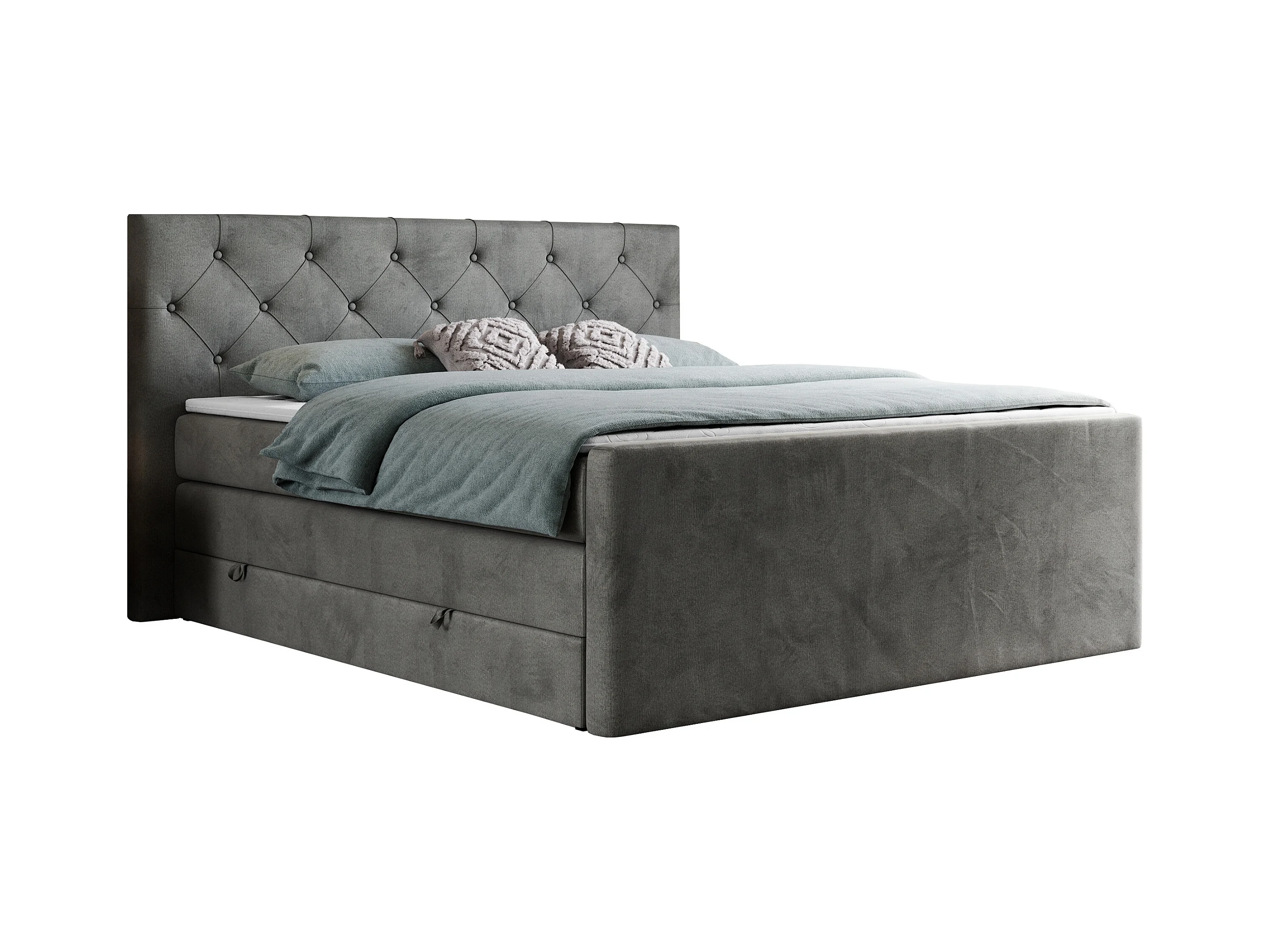 Boxspringbett VELEN KING - Doppelbett mit gestepptem Kopfteil, zwei Multipocket-Matratzen, Polsterbett mit Kopfstütze - 140x200 cm - H4 - Dunkelgrau Velvet