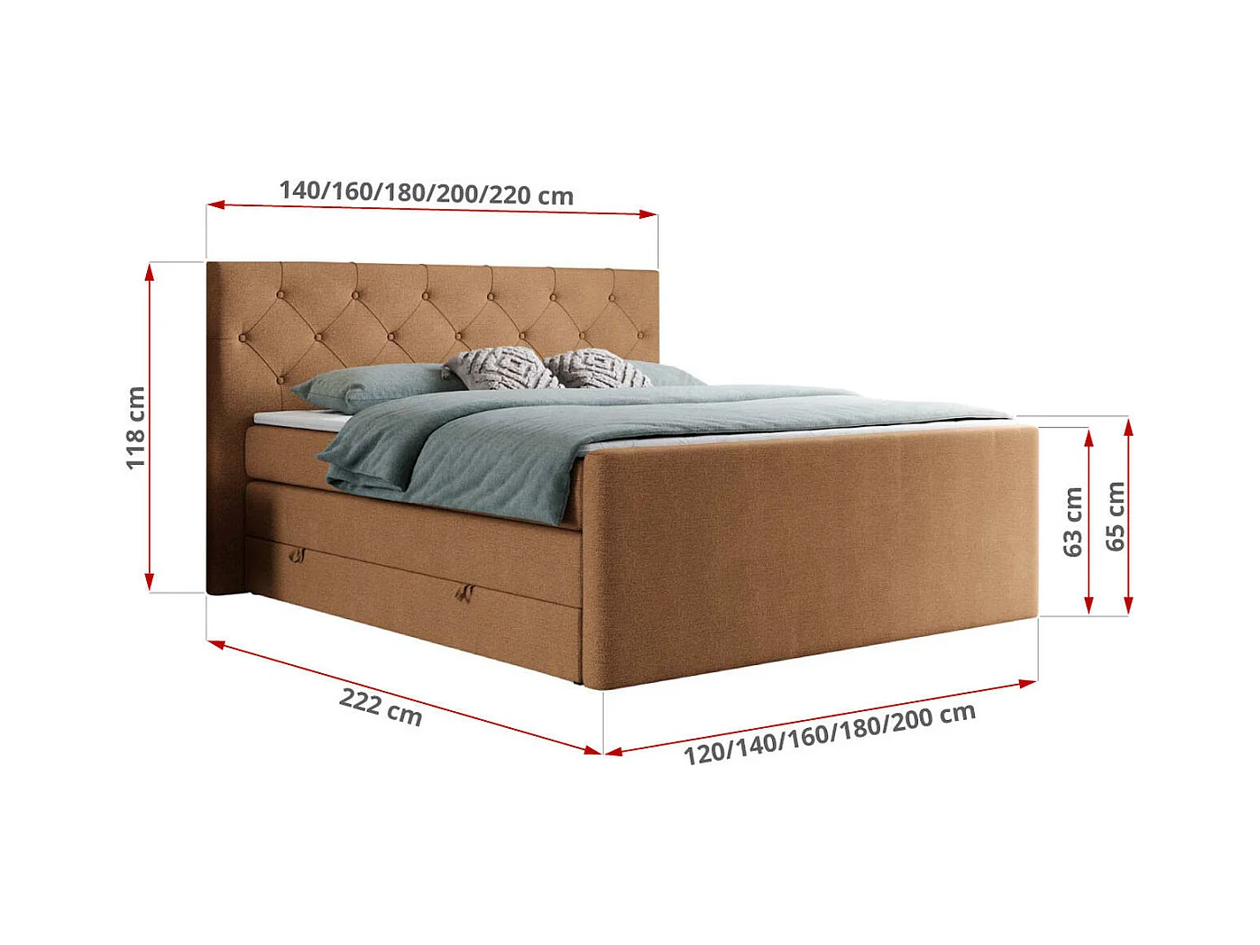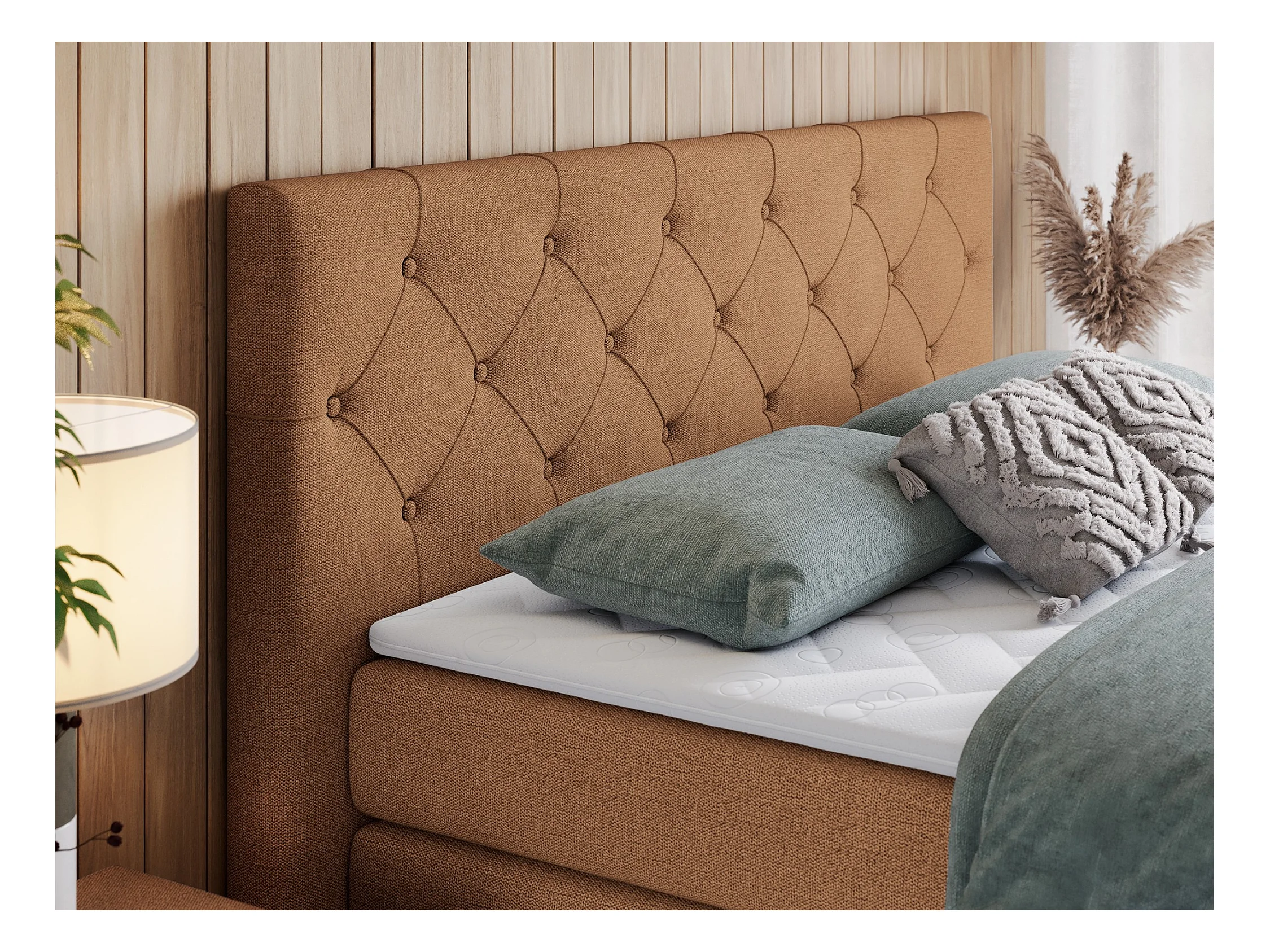 Boxspringbett VELEN KING - Doppelbett mit gestepptem Kopfteil, zwei Multipocket-Matratzen, Polsterbett mit Kopfstütze - 140x200 cm - H4 - Orange Strukture