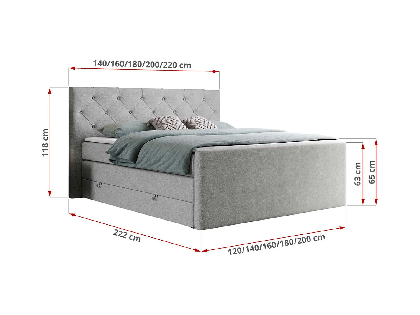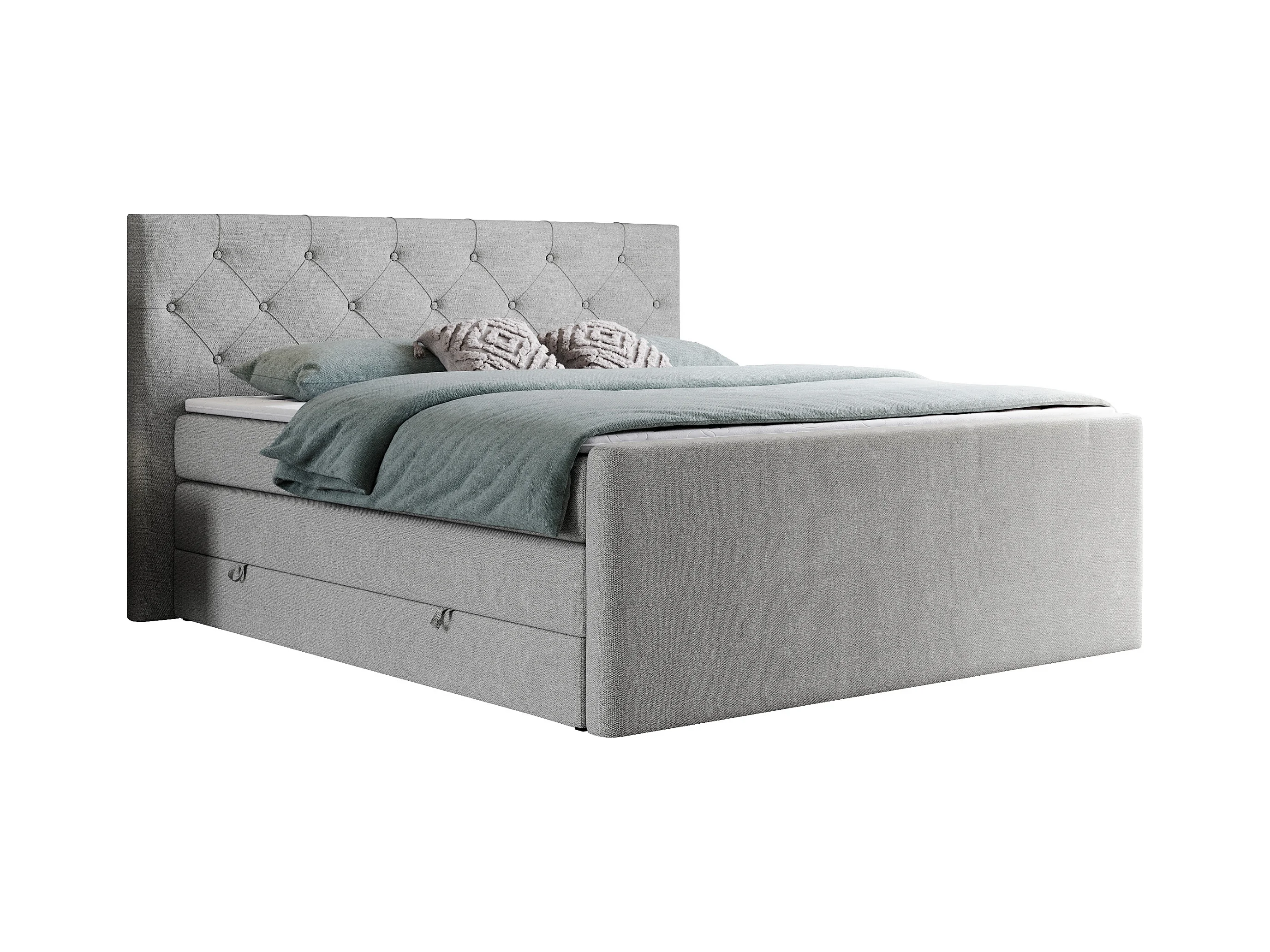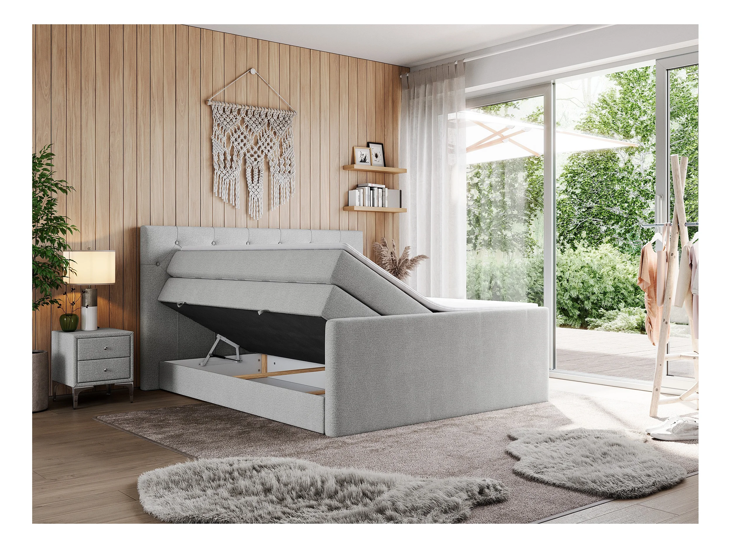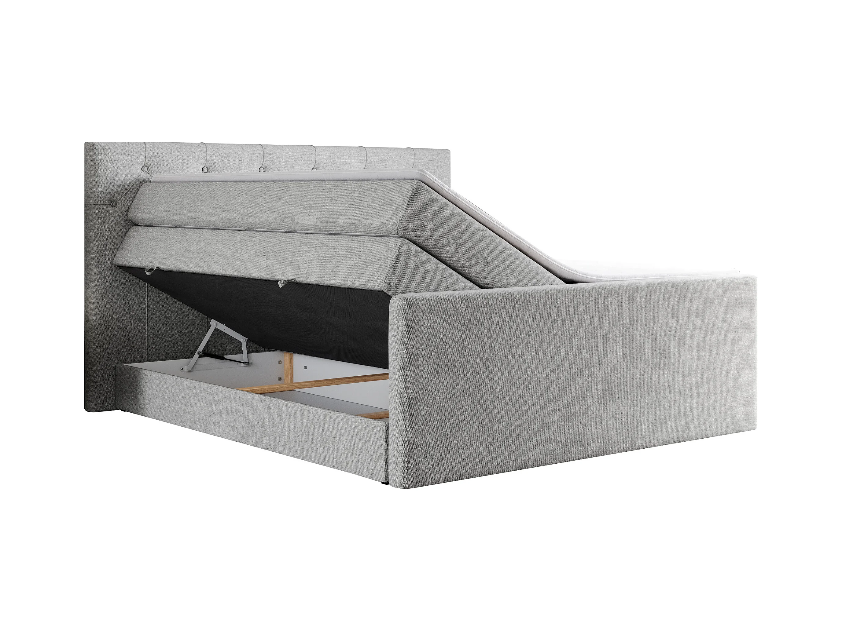 Boxspringbett VELEN KING - Doppelbett mit gestepptem Kopfteil, zwei Multipocket-Matratzen, Polsterbett mit Kopfstütze - 160x200 cm - H3 - Hellgrau Strukture