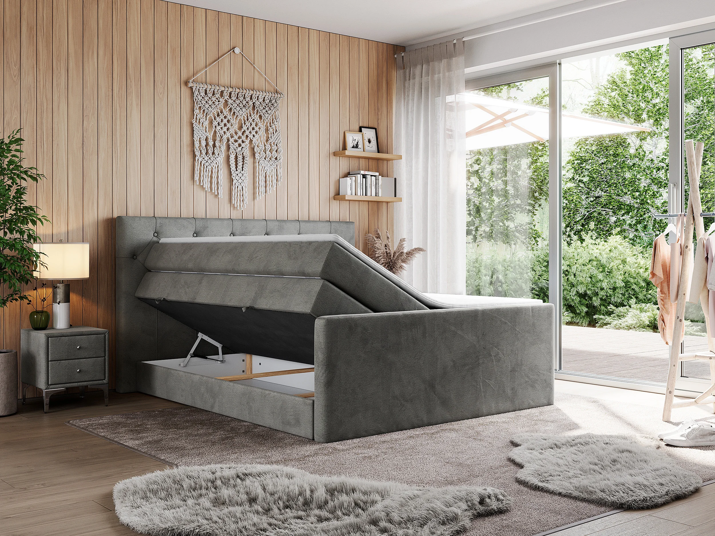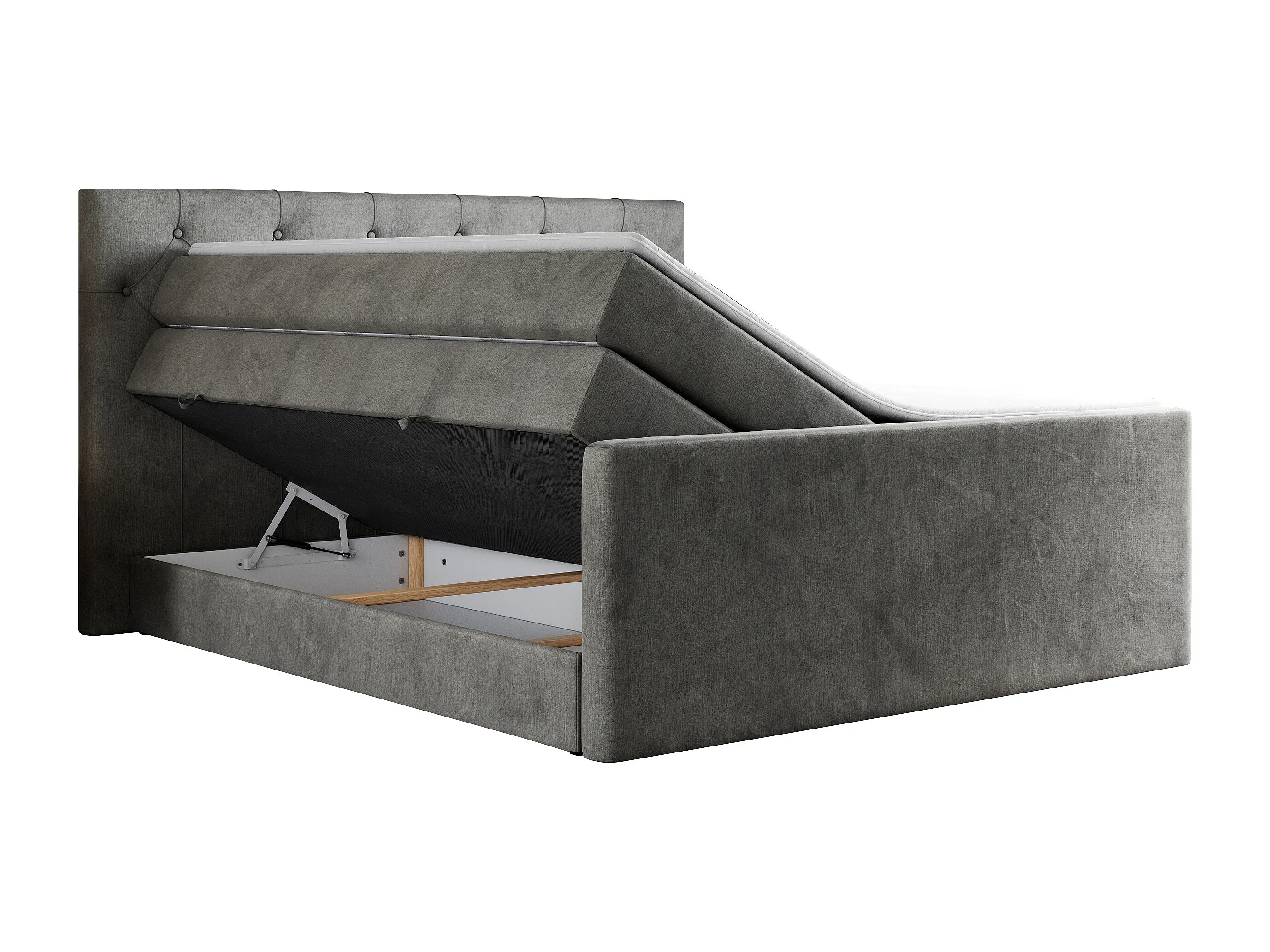 Boxspringbett VELEN KING - Doppelbett mit gestepptem Kopfteil, zwei Multipocket-Matratzen, Polsterbett mit Kopfstütze - 160x200 cm - H4 - Dunkelgrau Velvet