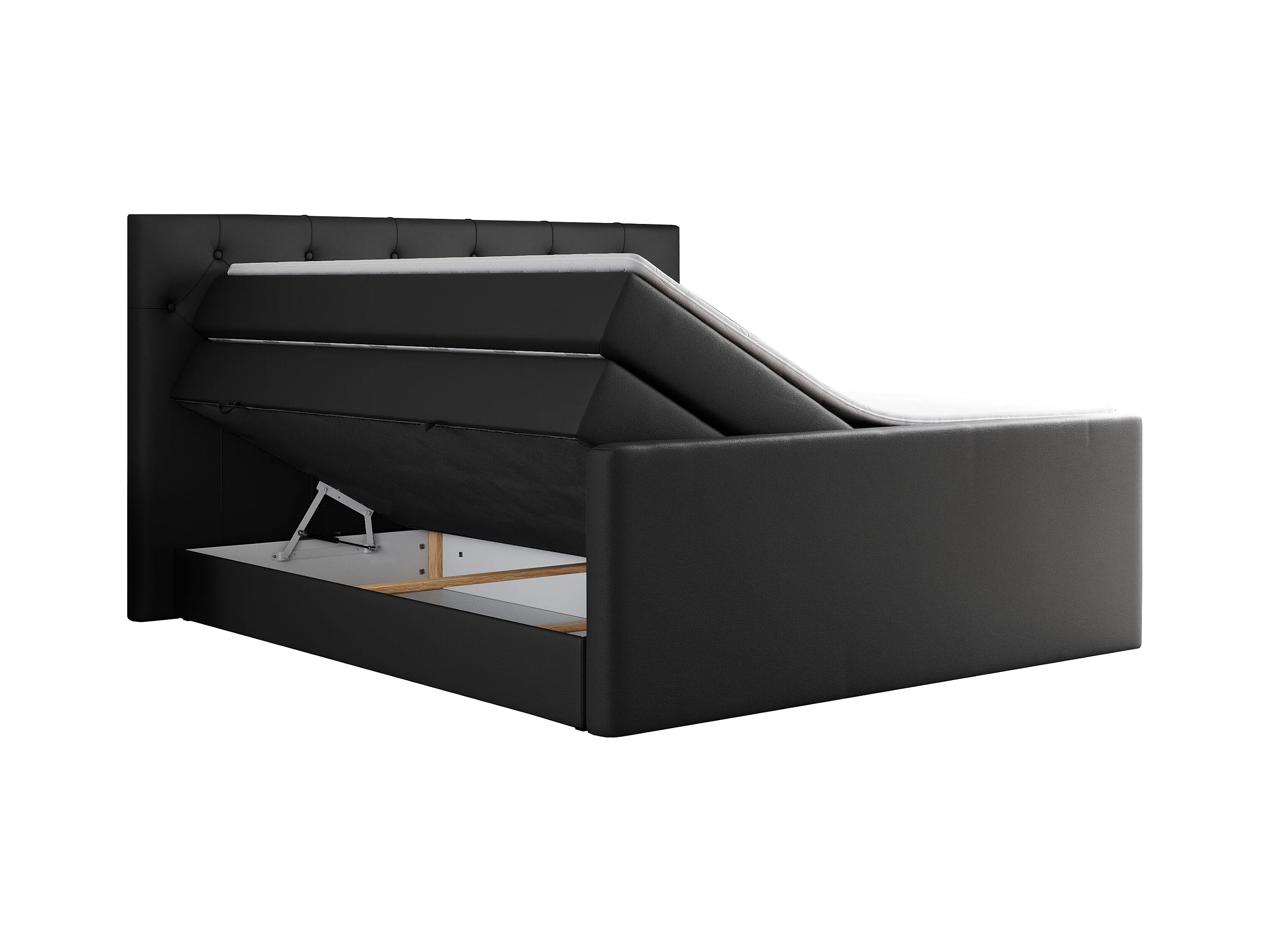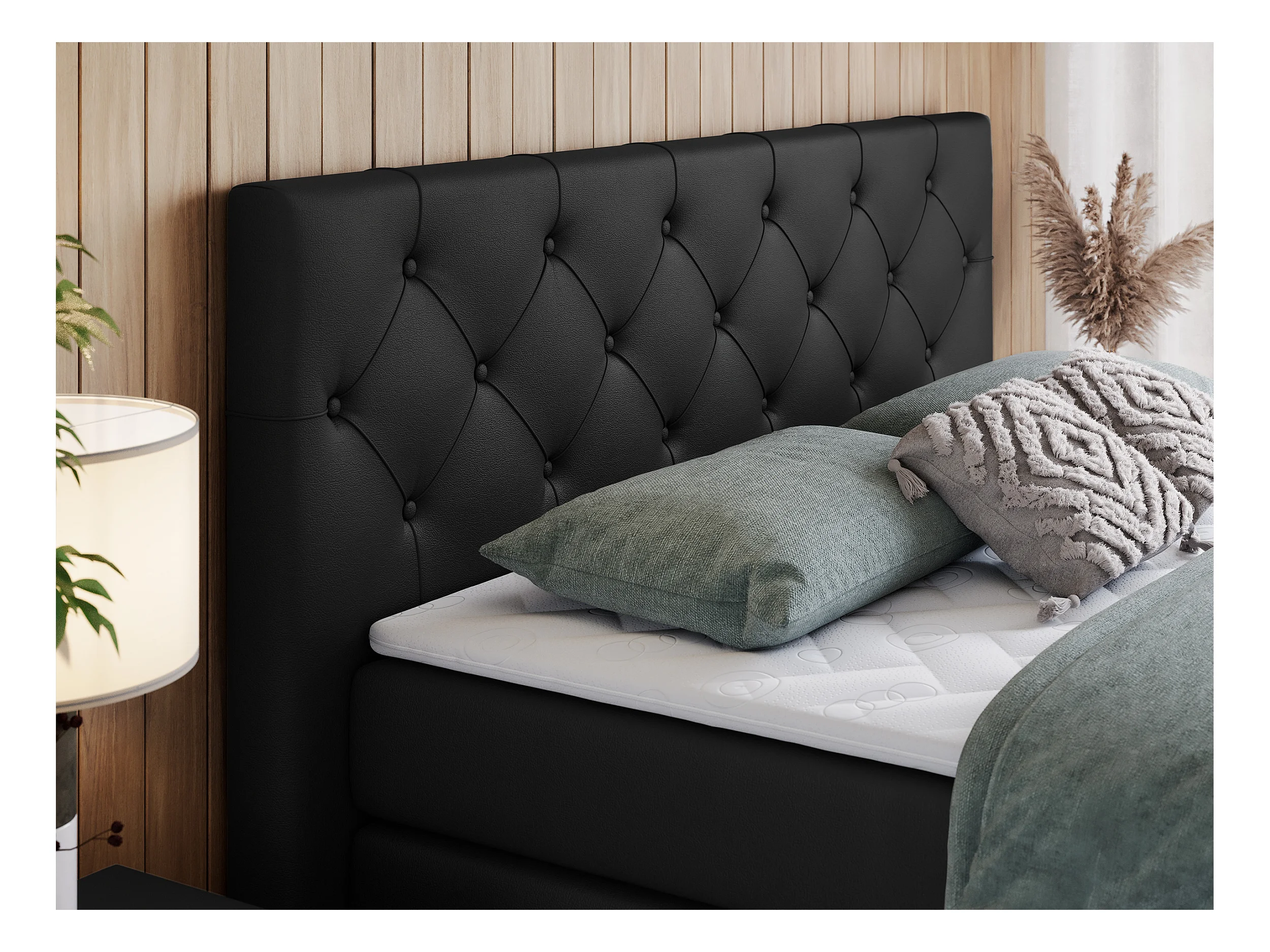 Boxspringbett VELEN KING - Doppelbett mit gestepptem Kopfteil, zwei Multipocket-Matratzen, Polsterbett mit Kopfstütze - 180x200 cm - H3 - Schwarz Kunstleder