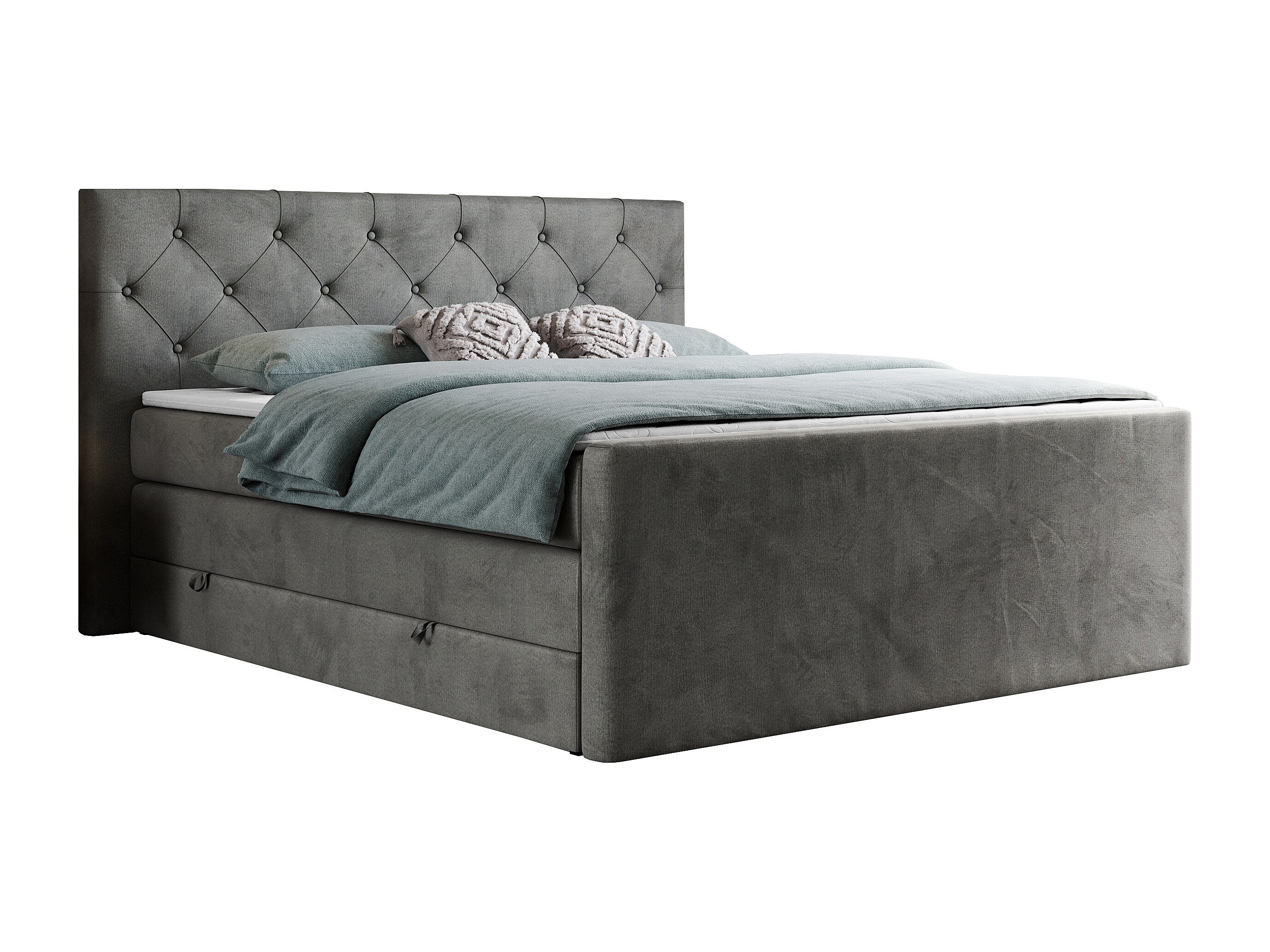 Boxspringbett VELEN KING - Doppelbett mit gestepptem Kopfteil, zwei Multipocket-Matratzen, Polsterbett mit Kopfstütze - 180x200 cm - H4 - Dunkelgrau Velvet