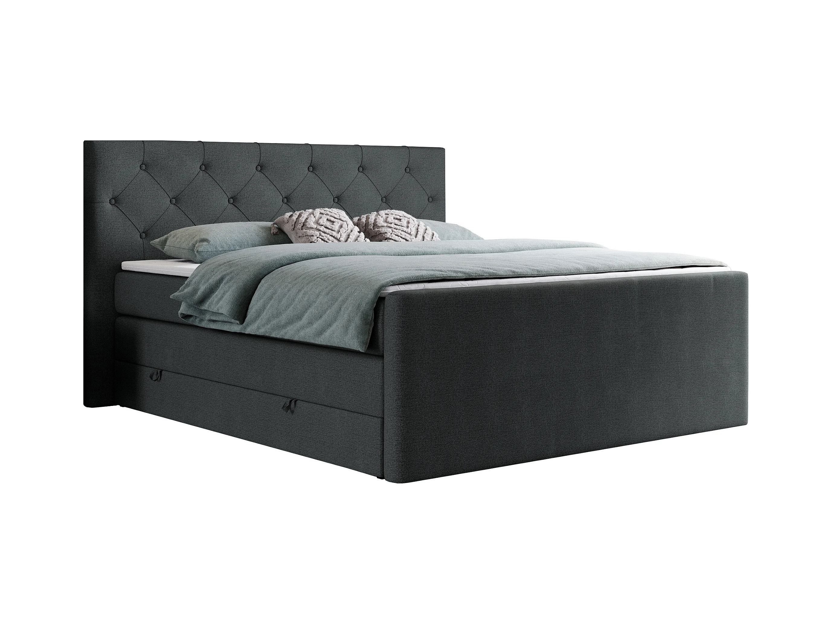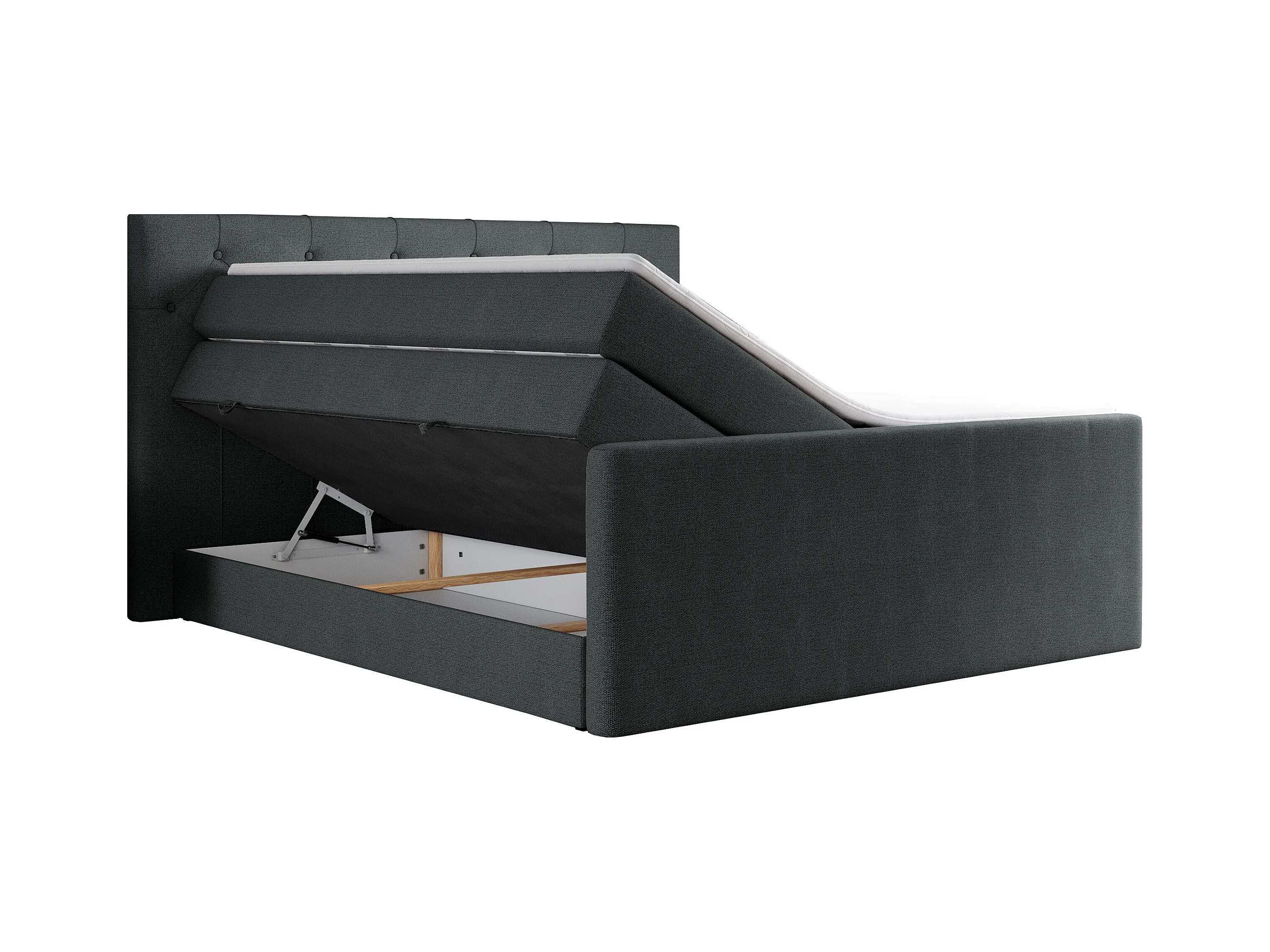 Boxspringbett VELEN KING - Doppelbett mit gestepptem Kopfteil, zwei Multipocket-Matratzen, Polsterbett mit Kopfstütze - 200x200 cm - H4 - Dunkelgrau Strukture