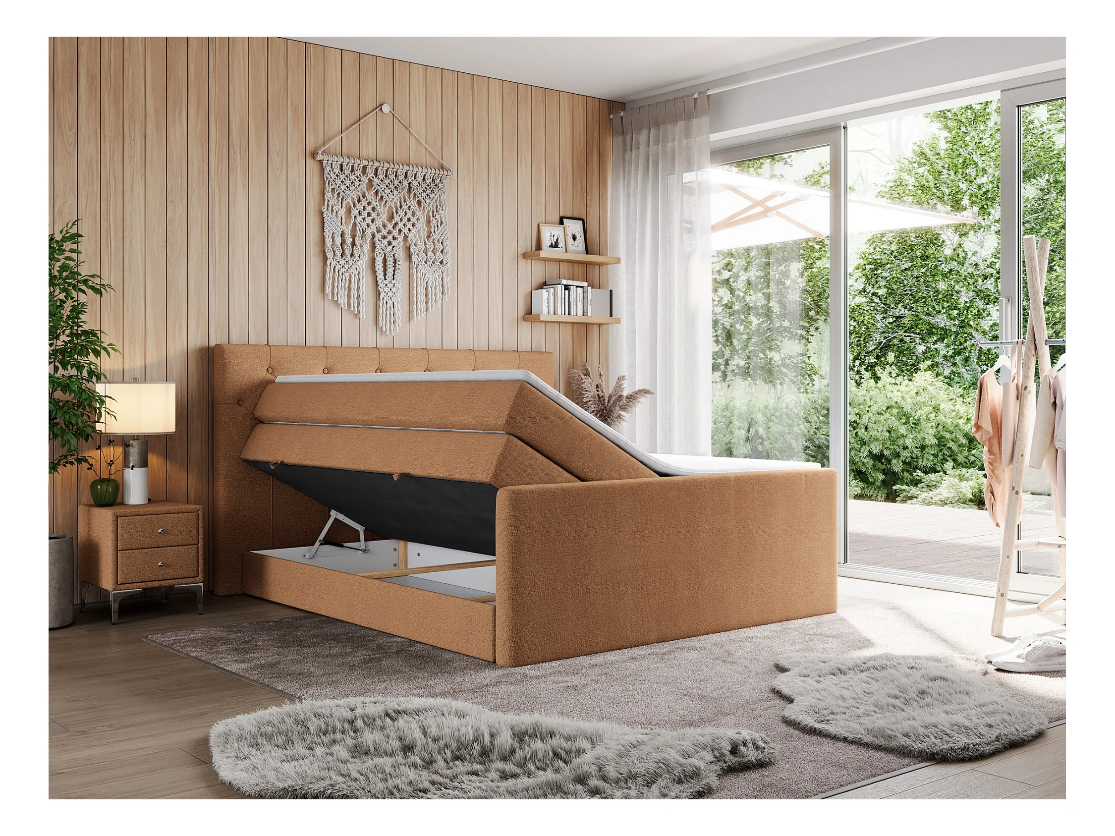 Boxspringbett VELEN KING - Doppelbett mit gestepptem Kopfteil, zwei Multipocket-Matratzen, Polsterbett mit Kopfstütze - 200x200 cm - H4 - Orange Strukture