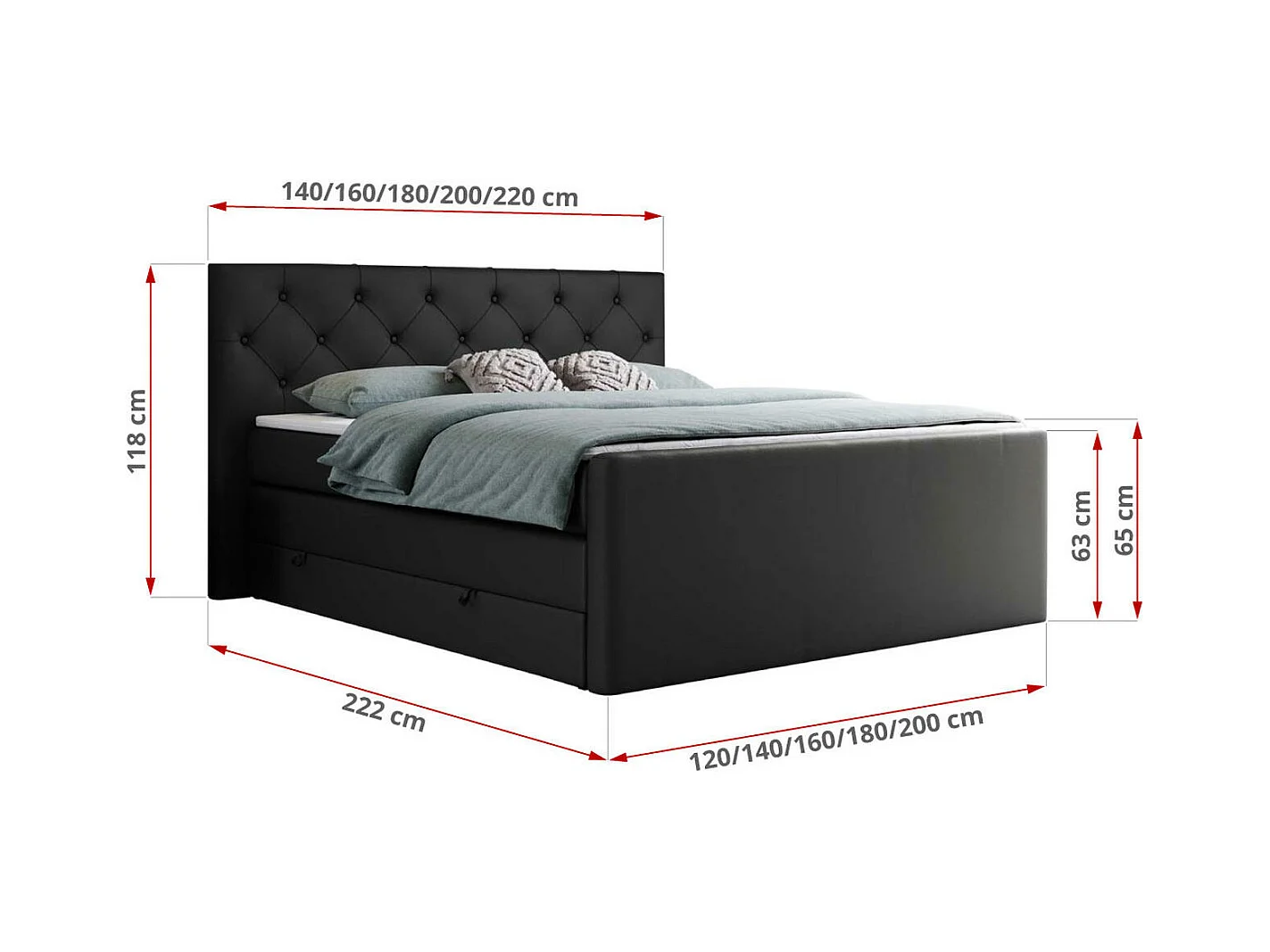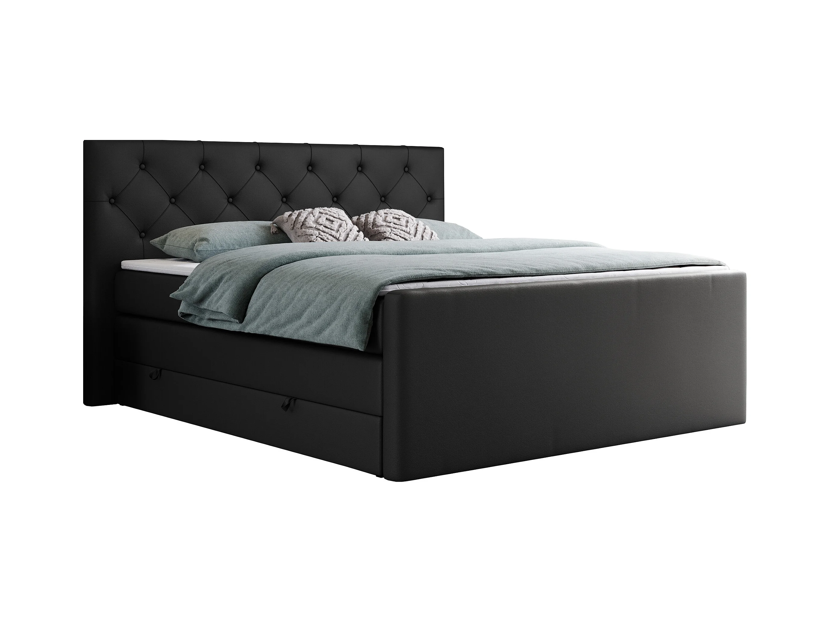 Boxspringbett VELEN KING - Doppelbett mit gestepptem Kopfteil, zwei Multipocket-Matratzen, Polsterbett mit Kopfstütze - 200x200 cm - H4 - Schwarz Kunstleder