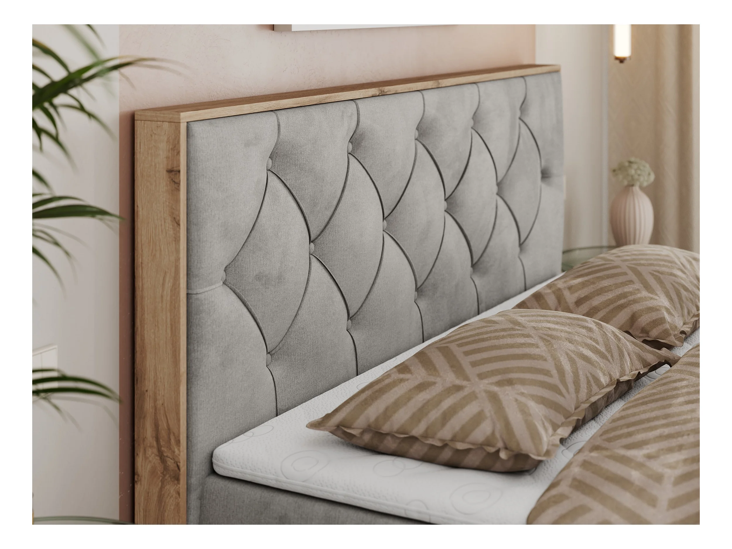 Boxspringbett VENETO - gestepptem Kopfteil, Set mit Multipocket-Matratze und Topper, Holzrahmen, zwei Bettkästen - 160x200 cm - H4 - Hellgrau Velvet