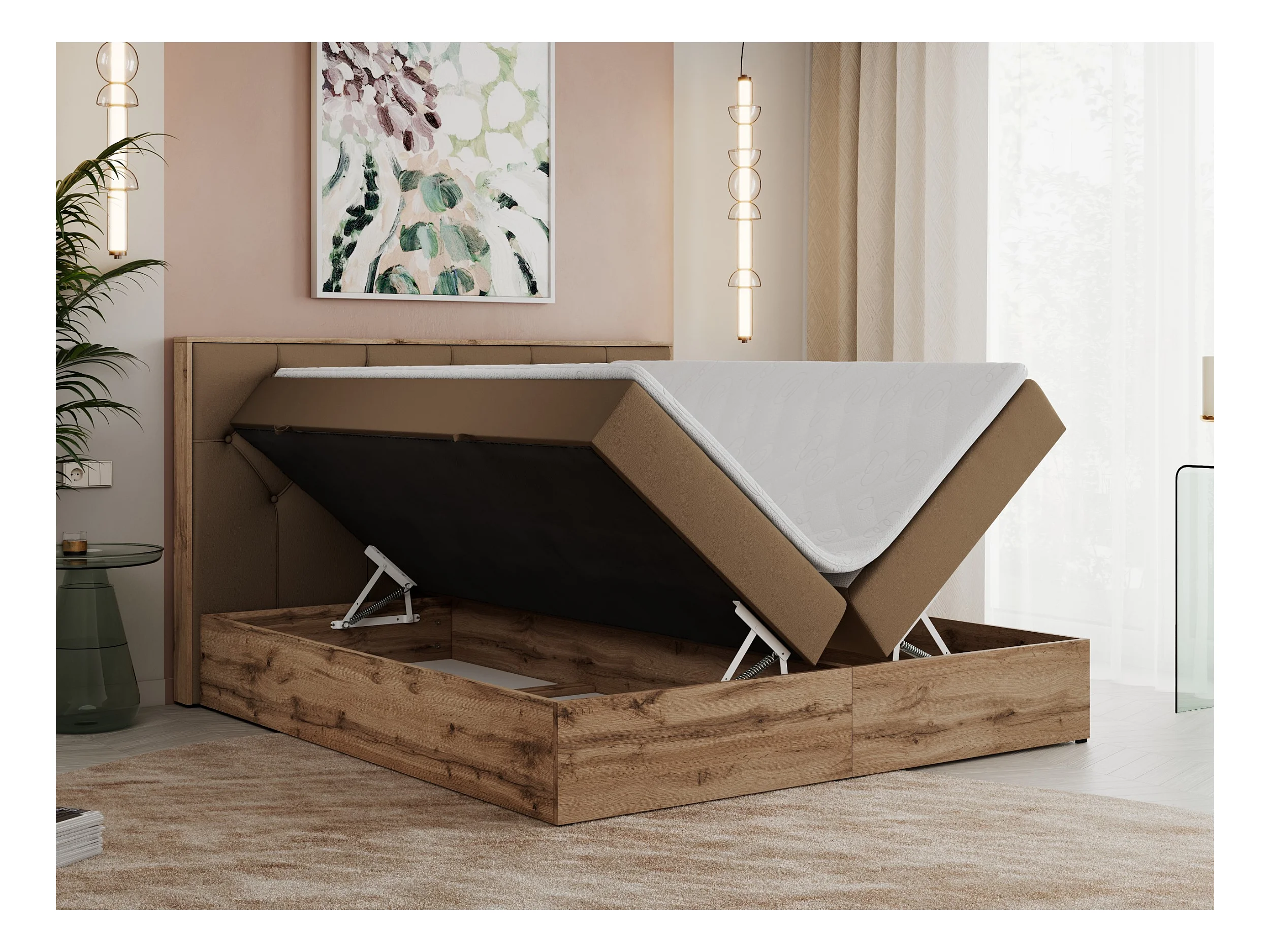 Boxspringbett VENETO - gestepptem Kopfteil, Set mit Multipocket-Matratze und Topper, Holzrahmen, zwei Bettkästen - 180x200 cm - H4 - Braun Kunstleder