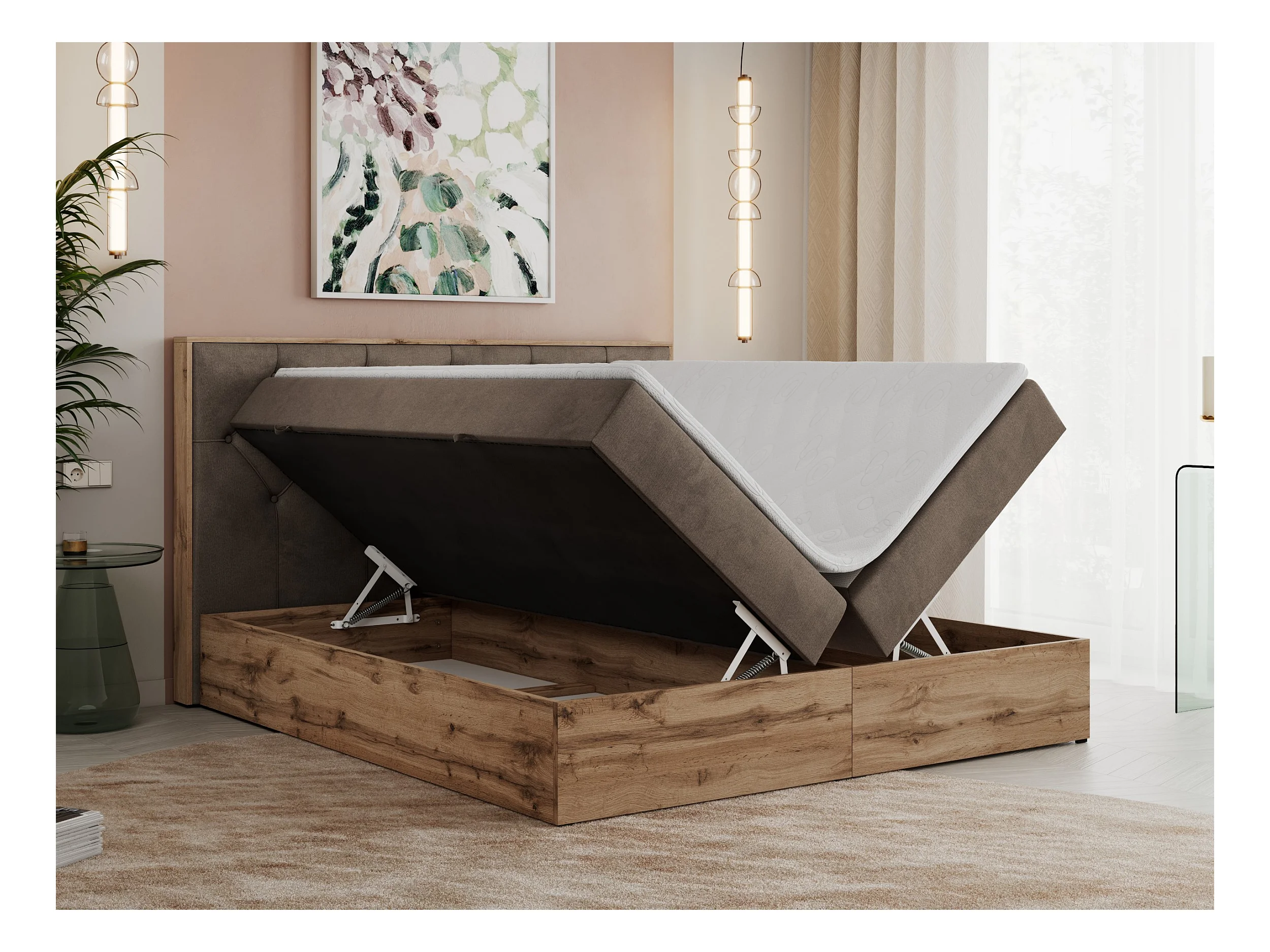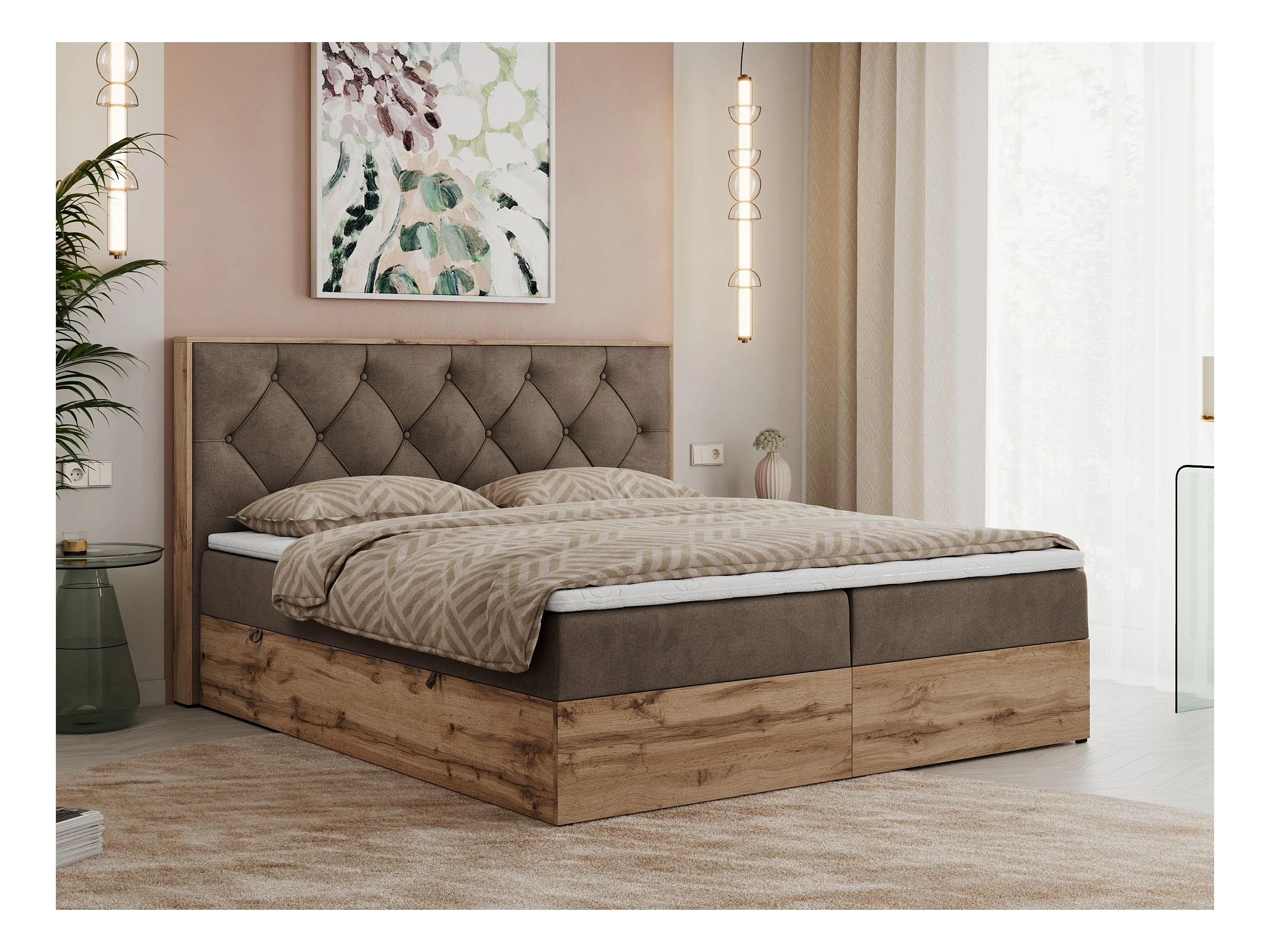 Boxspringbett VENETO - gestepptem Kopfteil, Set mit Multipocket-Matratze und Topper, Holzrahmen, zwei Bettkästen - 200x200 cm - H3 - Braun Velvet