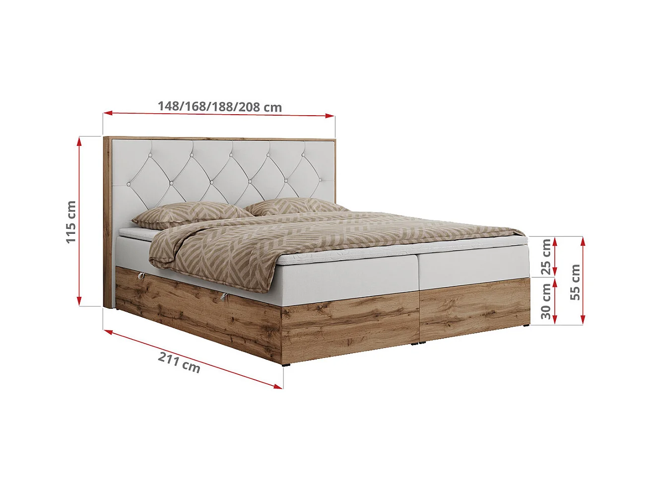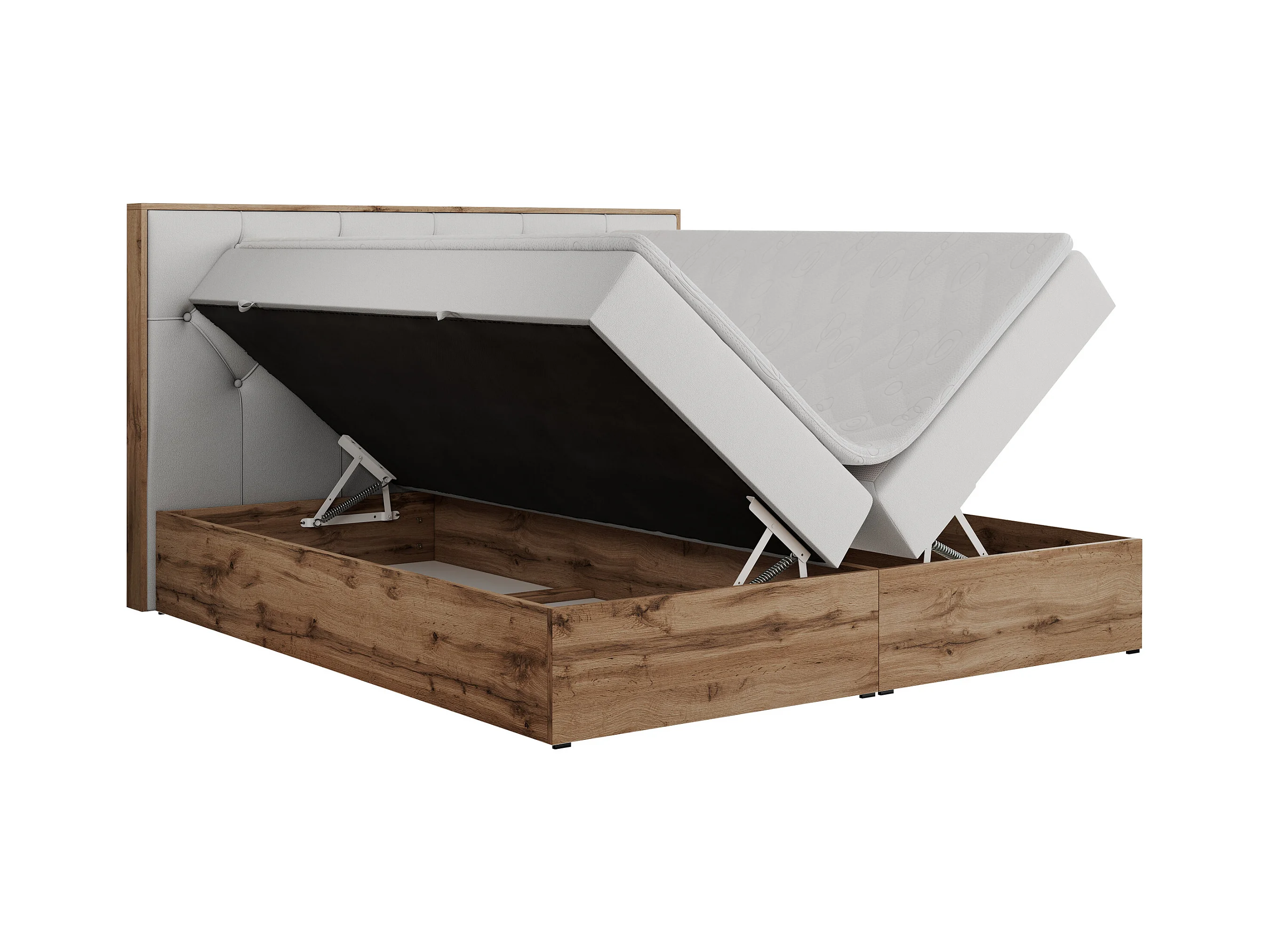 Boxspringbett VENETO - gestepptem Kopfteil, Set mit Multipocket-Matratze und Topper, Holzrahmen, zwei Bettkästen - 200x200 cm - H3 - Weiß Kunstleder