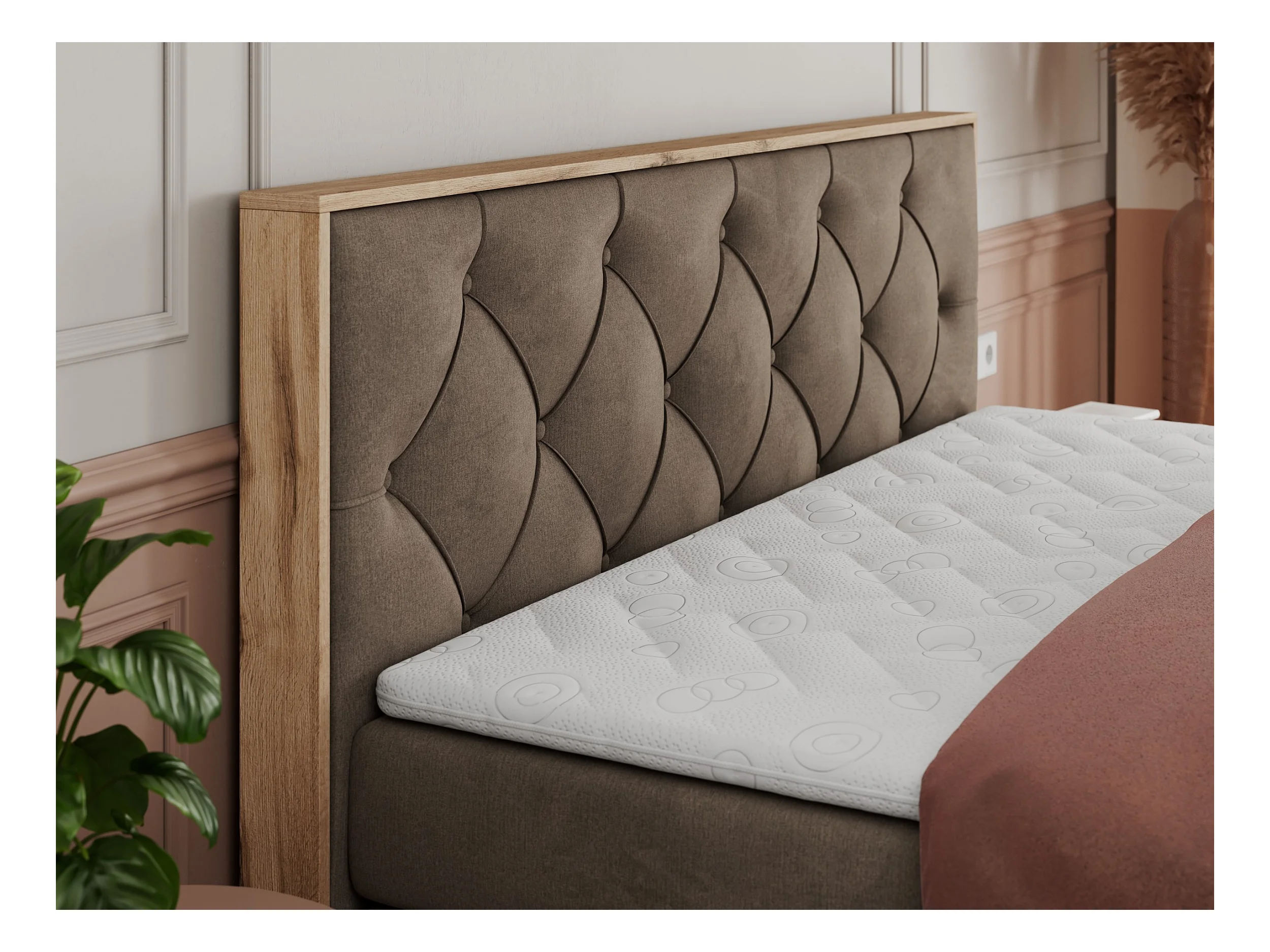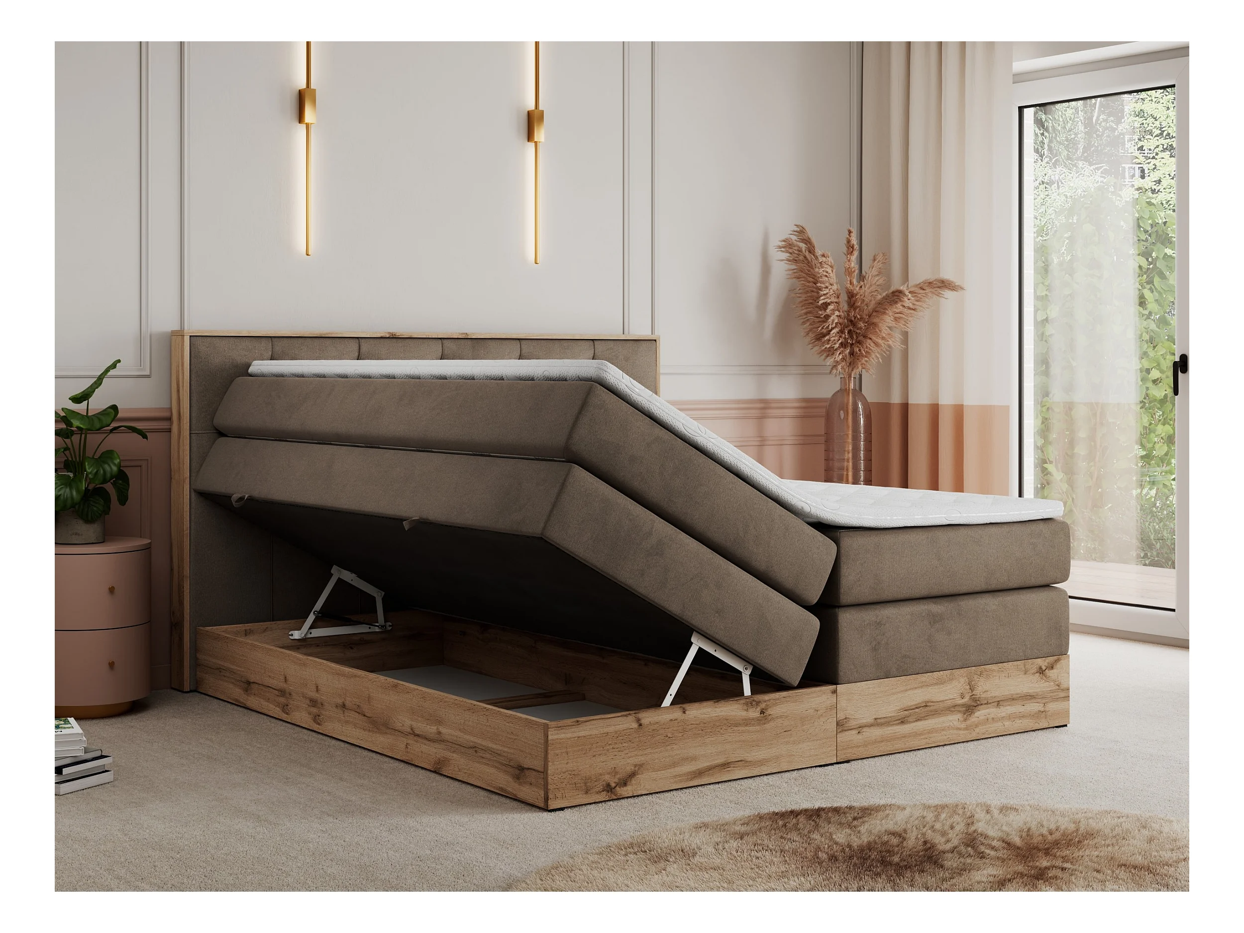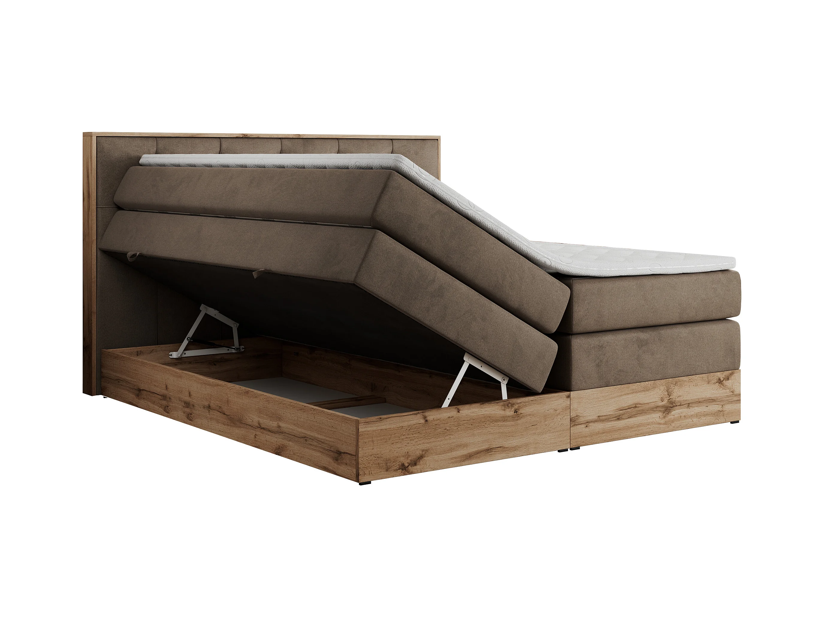 Boxspringbett VENETO KING - Polsterbett mit Multipocket-Matratzen und Kopfteil, Holzrahmen, zwei Bettkästen - 140x200 cm - H3 - Braun Velvet