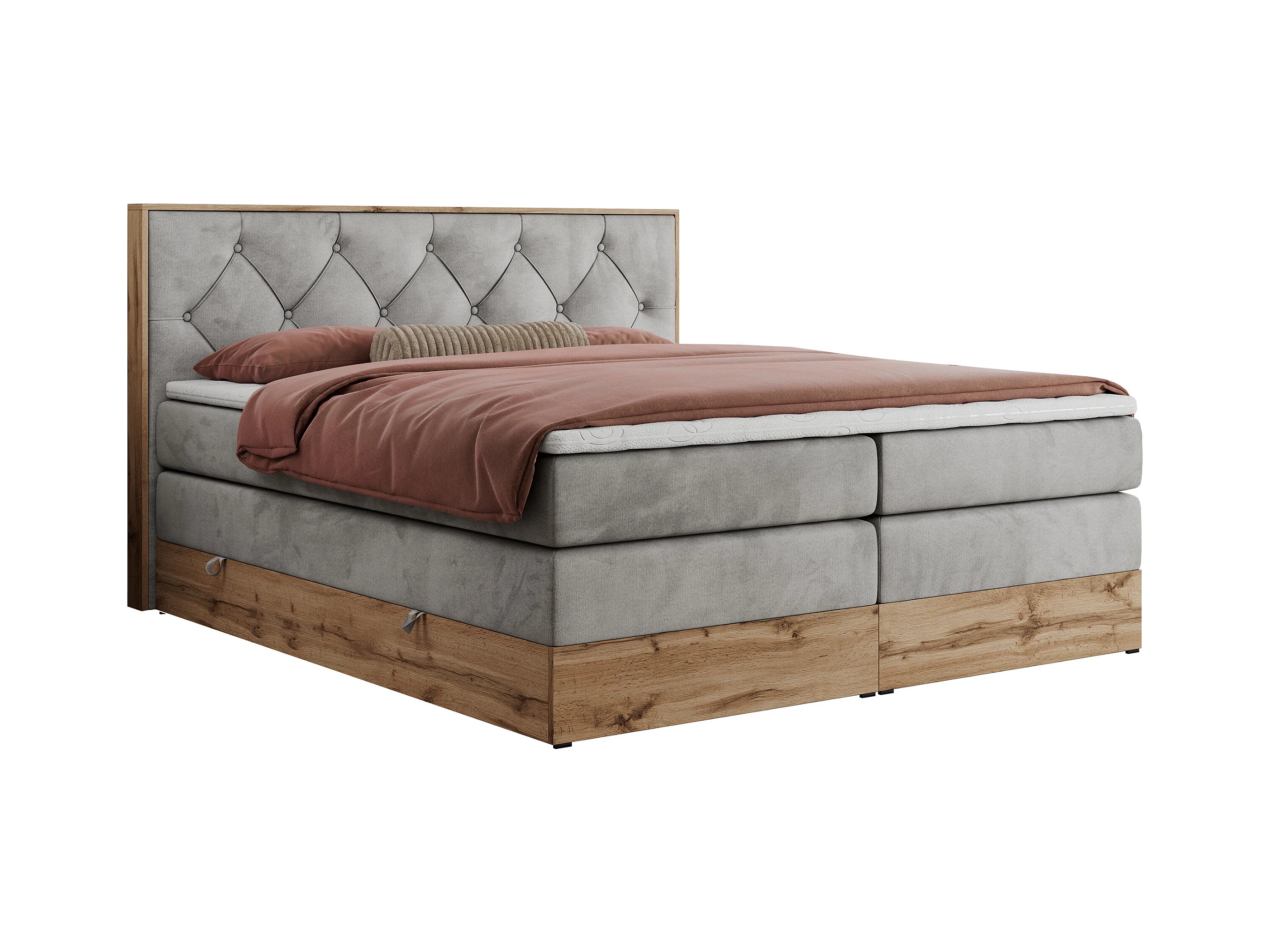 Boxspringbett VENETO KING - Polsterbett mit Multipocket-Matratzen und Kopfteil, Holzrahmen, zwei Bettkästen - 140x200 cm - H4 - Hellgrau Velvet