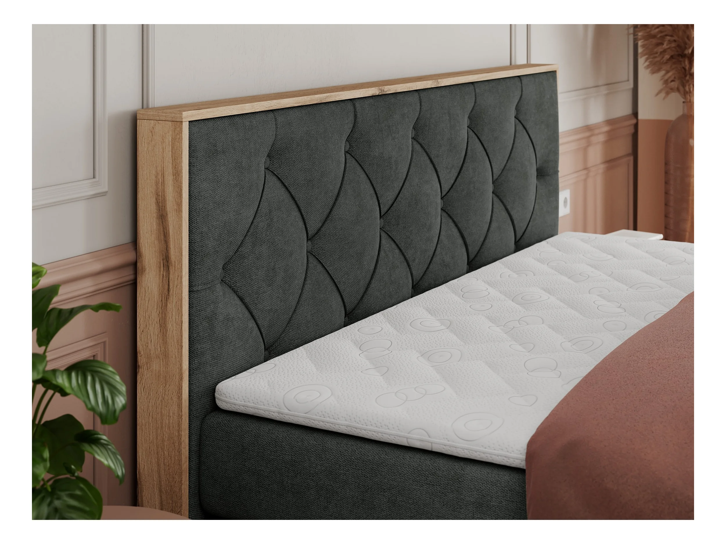 Boxspringbett VENETO KING - Polsterbett mit Multipocket-Matratzen und Kopfteil, Holzrahmen, zwei Bettkästen - 160x200 cm - H3 - Dunkelgrau Strukture