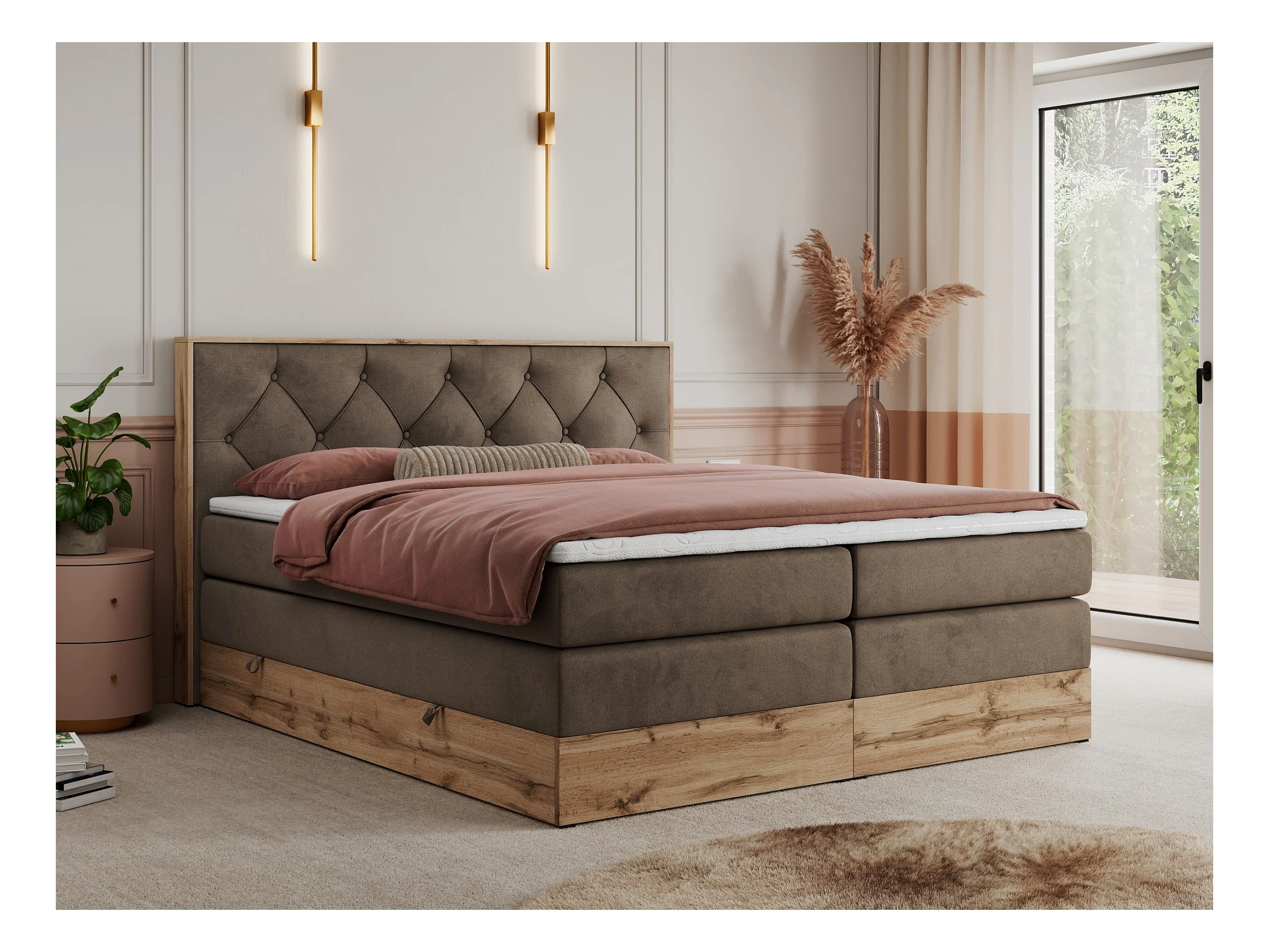 Boxspringbett VENETO KING - Polsterbett mit Multipocket-Matratzen und Kopfteil, Holzrahmen, zwei Bettkästen - 160x200 cm - H4 - Braun Velvet