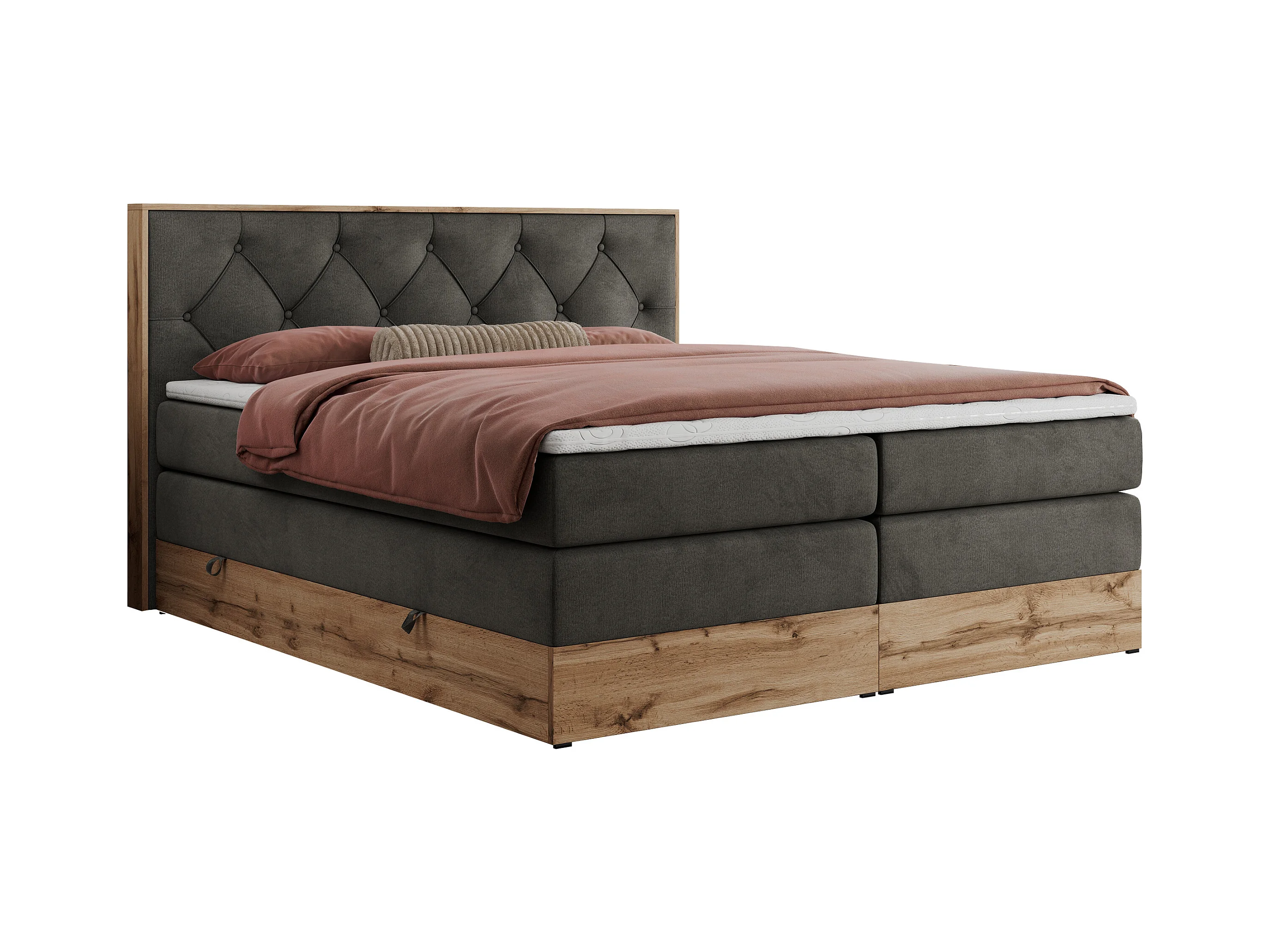 Boxspringbett VENETO KING - Polsterbett mit Multipocket-Matratzen und Kopfteil, Holzrahmen, zwei Bettkästen - 180x200 cm - H3 - Dunkelgrau Velvet