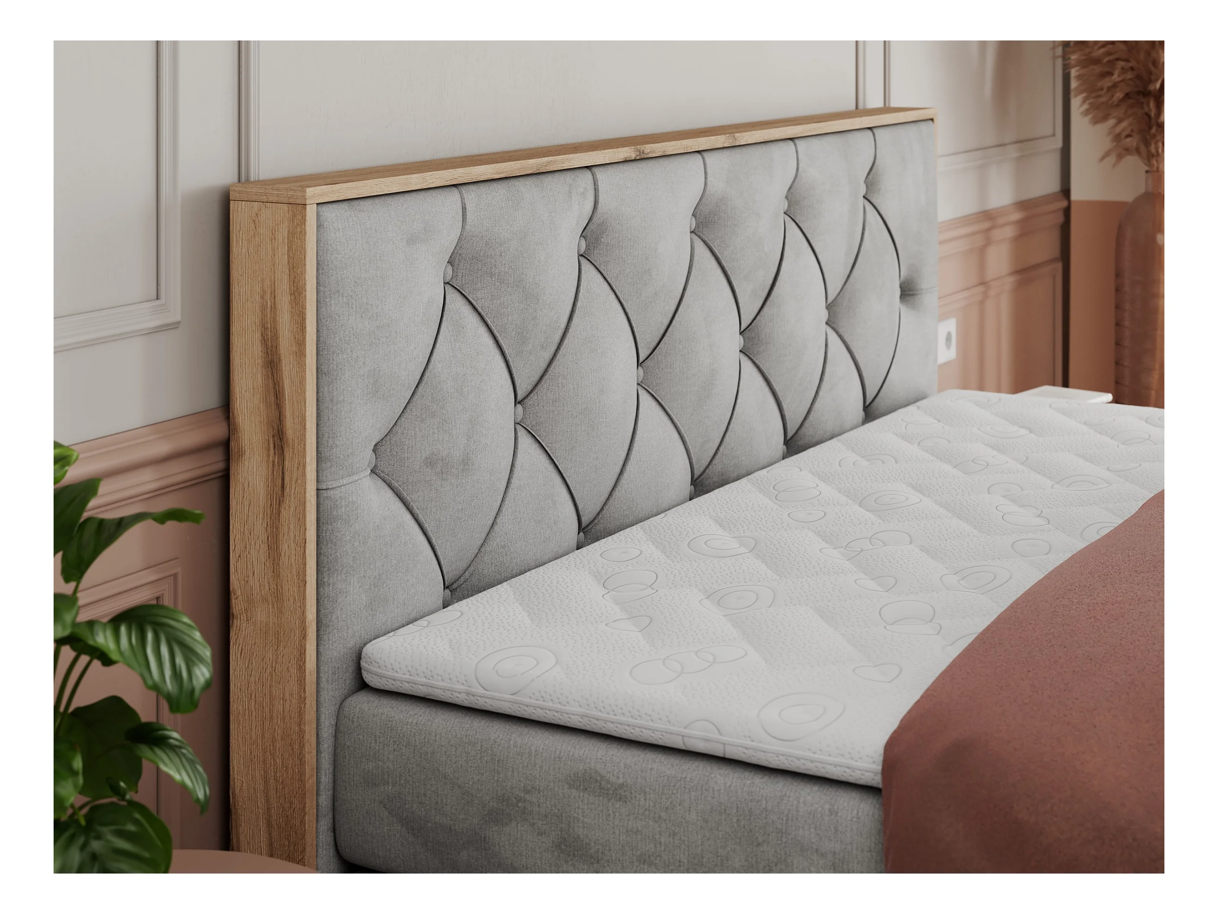 Boxspringbett VENETO KING - Polsterbett mit Multipocket-Matratzen und Kopfteil, Holzrahmen, zwei Bettkästen - 180x200 cm - H3 - Hellgrau Velvet