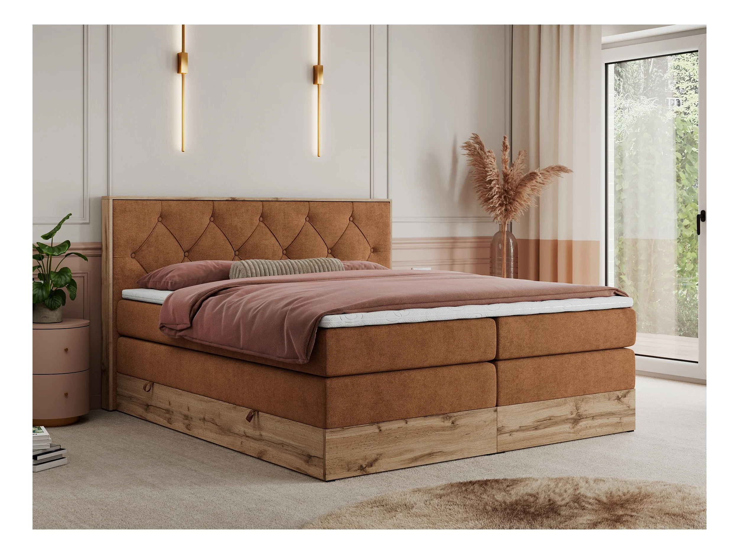 Boxspringbett VENETO KING - Polsterbett mit Multipocket-Matratzen und Kopfteil, Holzrahmen, zwei Bettkästen - 180x200 cm - H3 - Orange Strukture