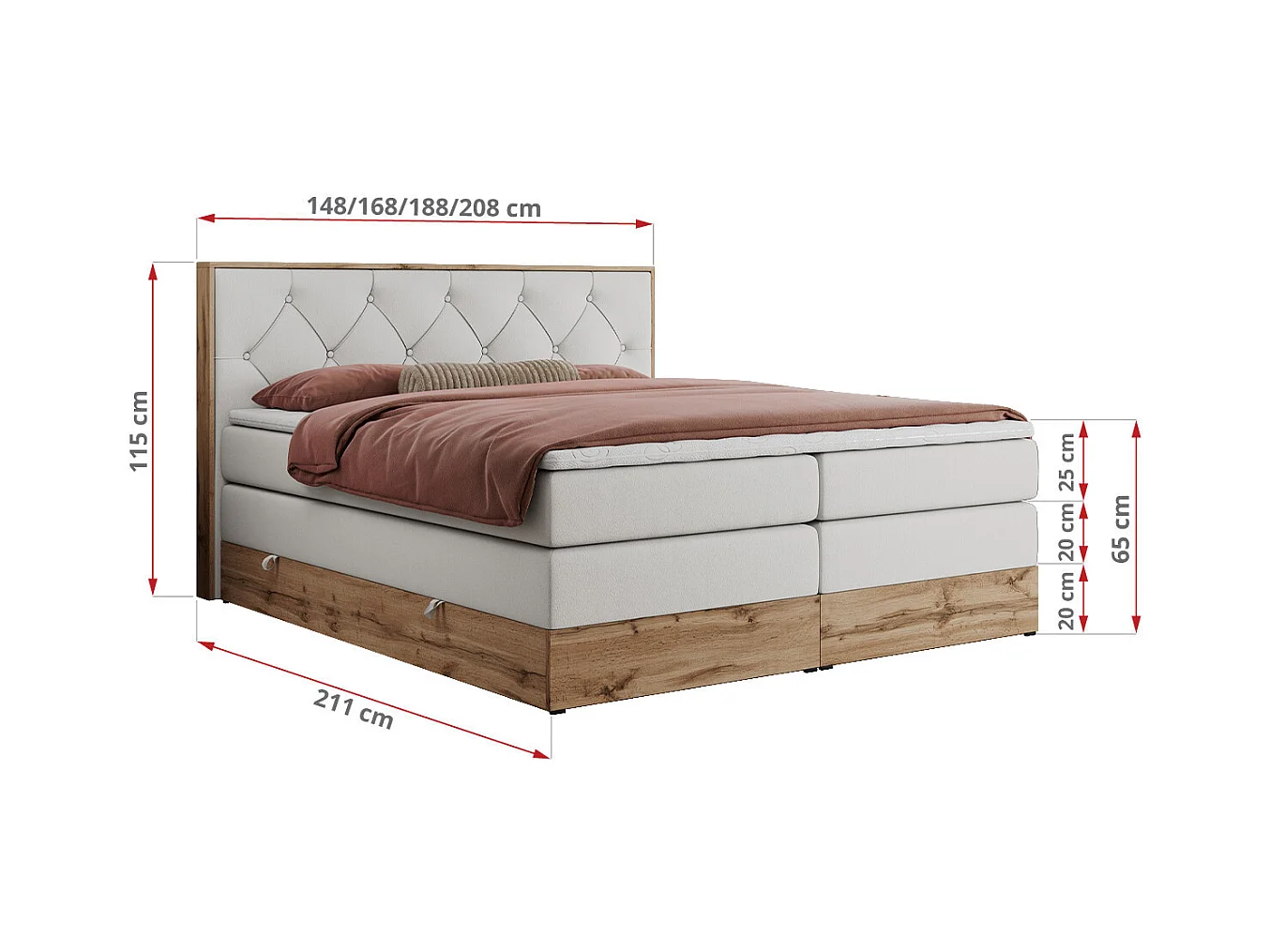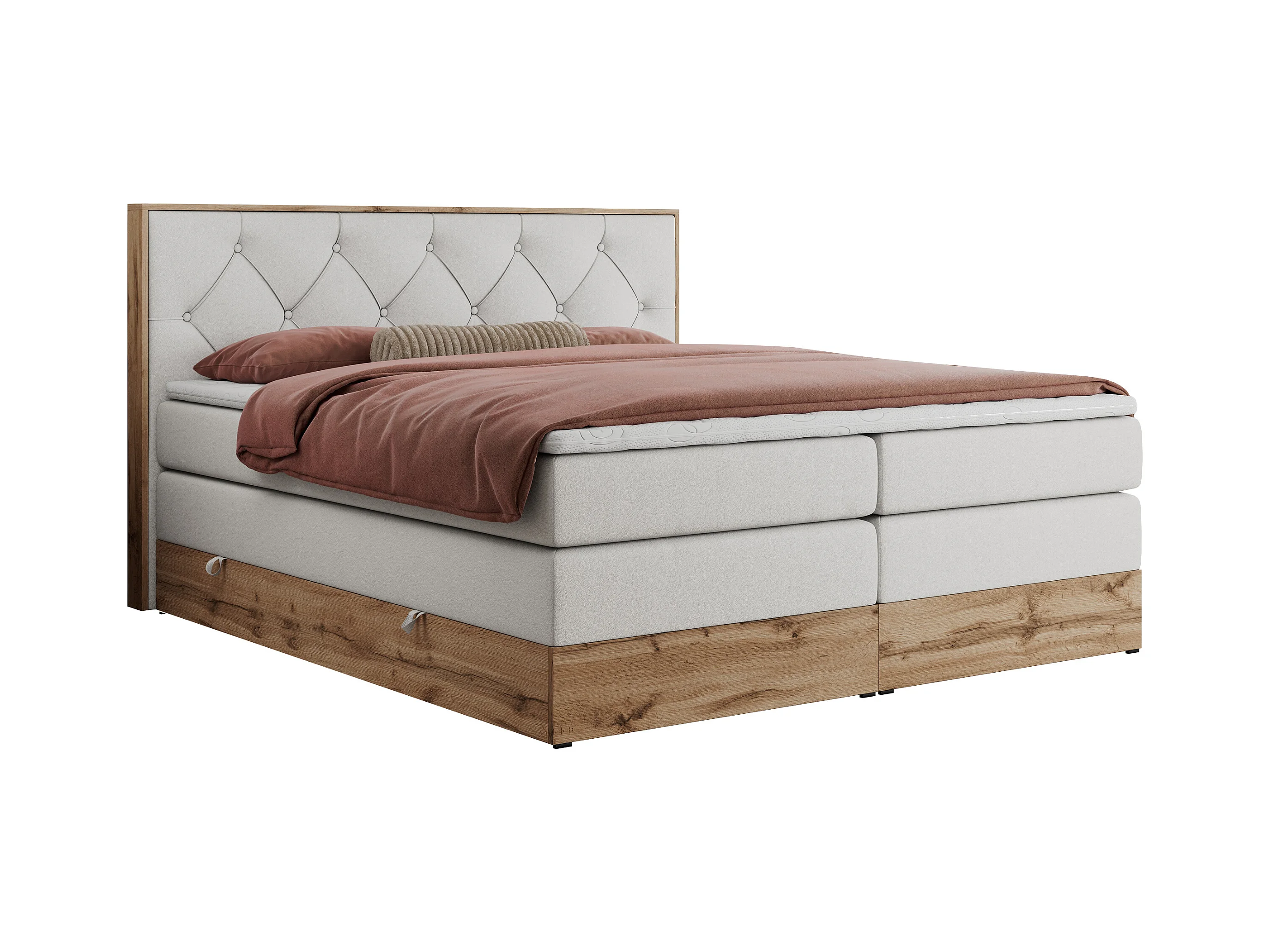 Boxspringbett VENETO KING - Polsterbett mit Multipocket-Matratzen und Kopfteil, Holzrahmen, zwei Bettkästen - 180x200 cm - H3 - Weiß Kunstleder