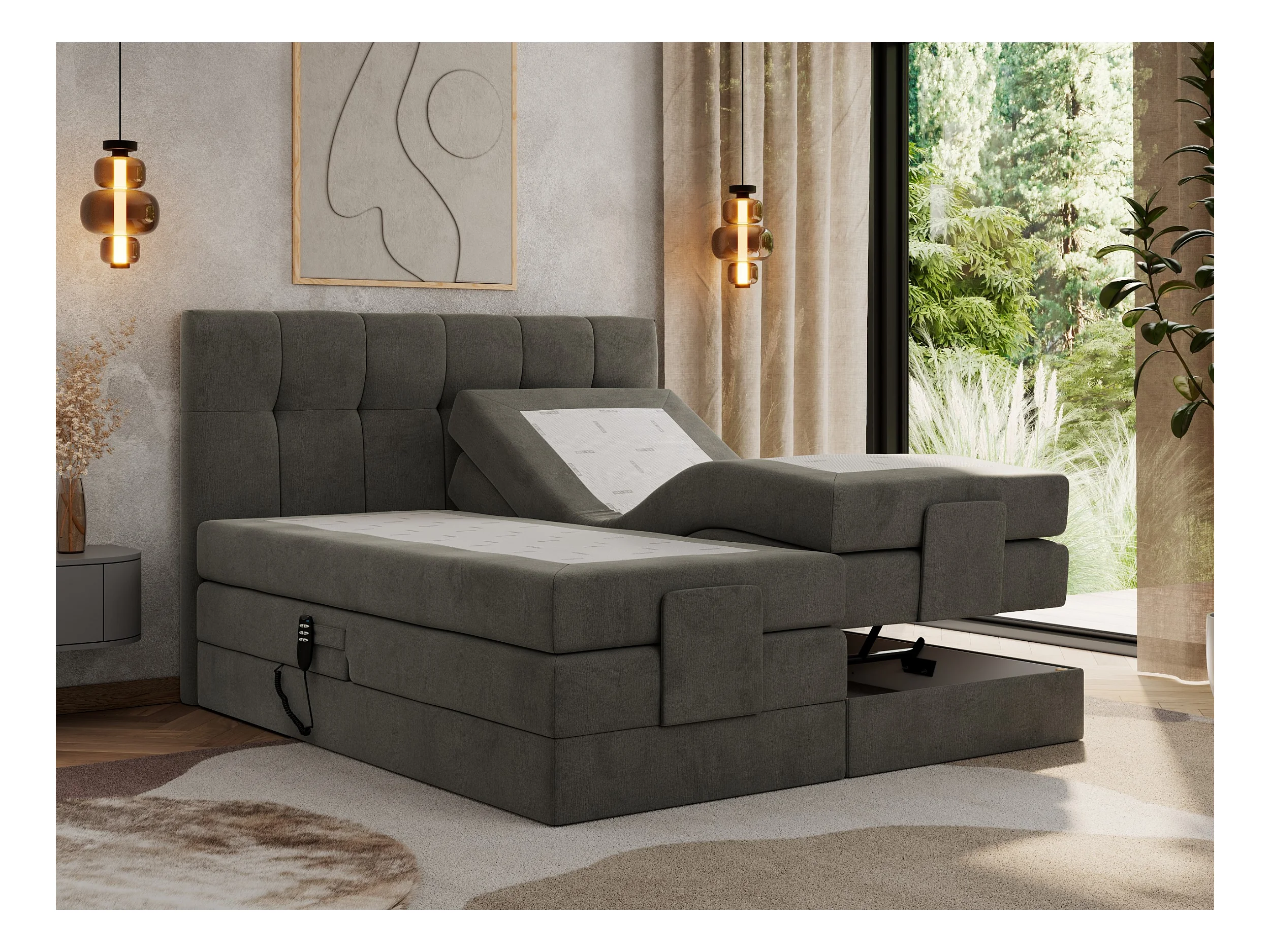 Boxspringbett VITTORIA - mit gestepptem Kopfteil, elektrischem Untergestell, Multipocket-Matratze - 160x200 cm - H3 - Dunkelgrau Velvet