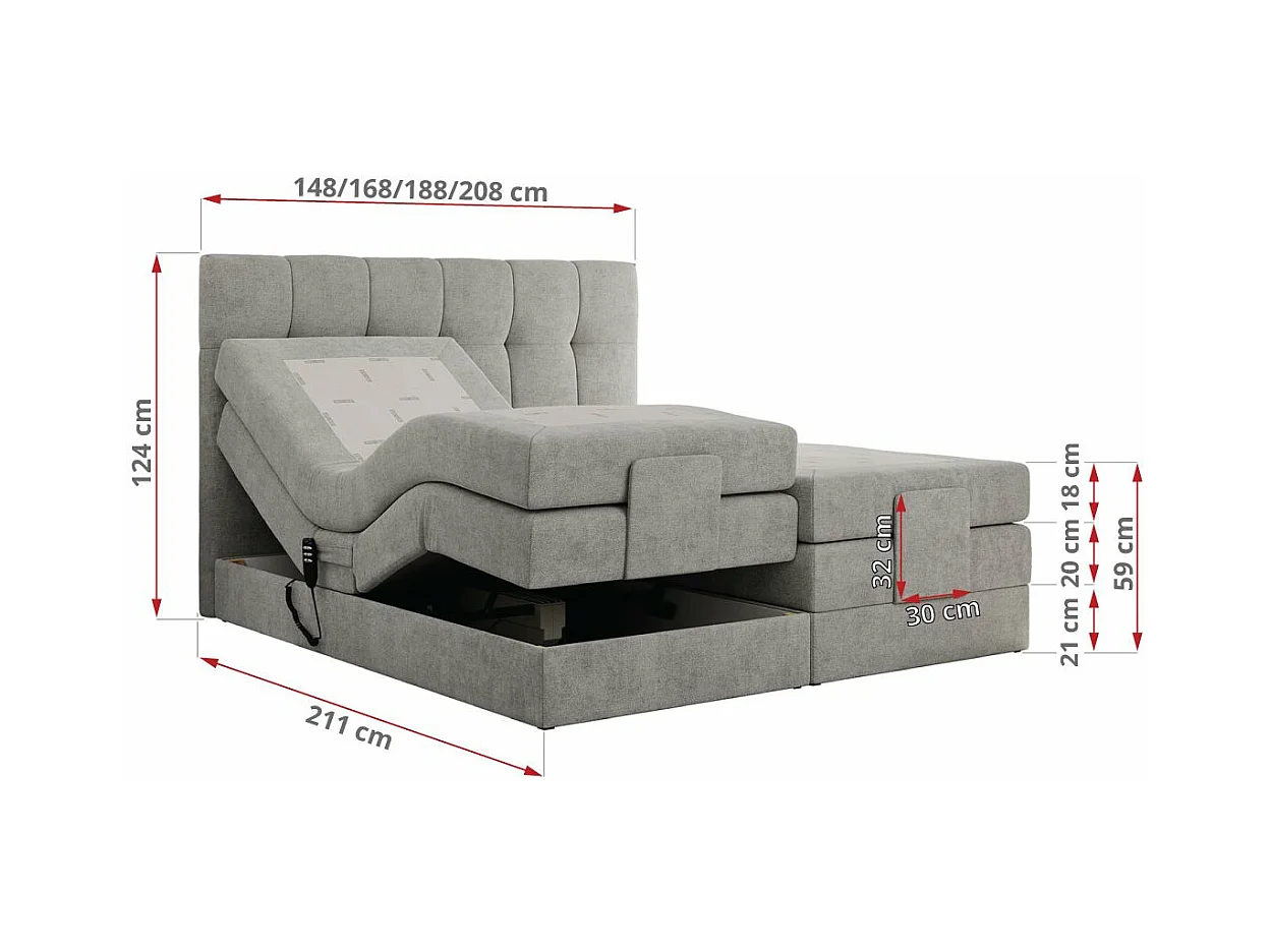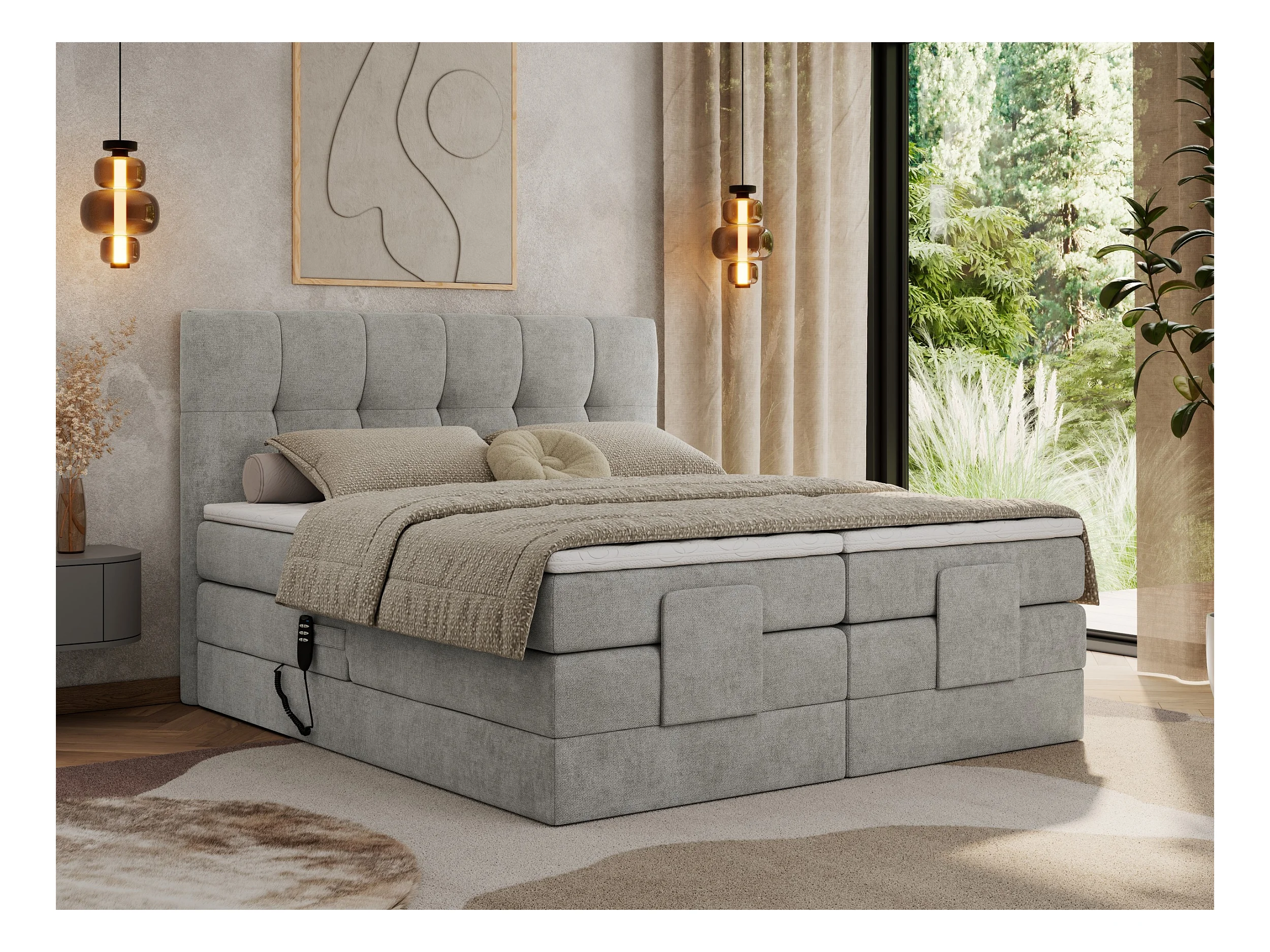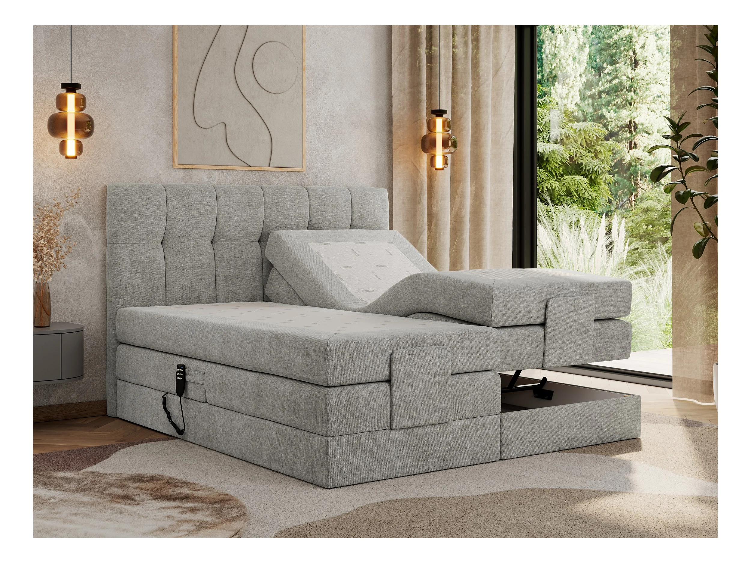 Boxspringbett VITTORIA - mit gestepptem Kopfteil, elektrischem Untergestell, Multipocket-Matratze - 160x200 cm - H3 - Hellgrau Strukture