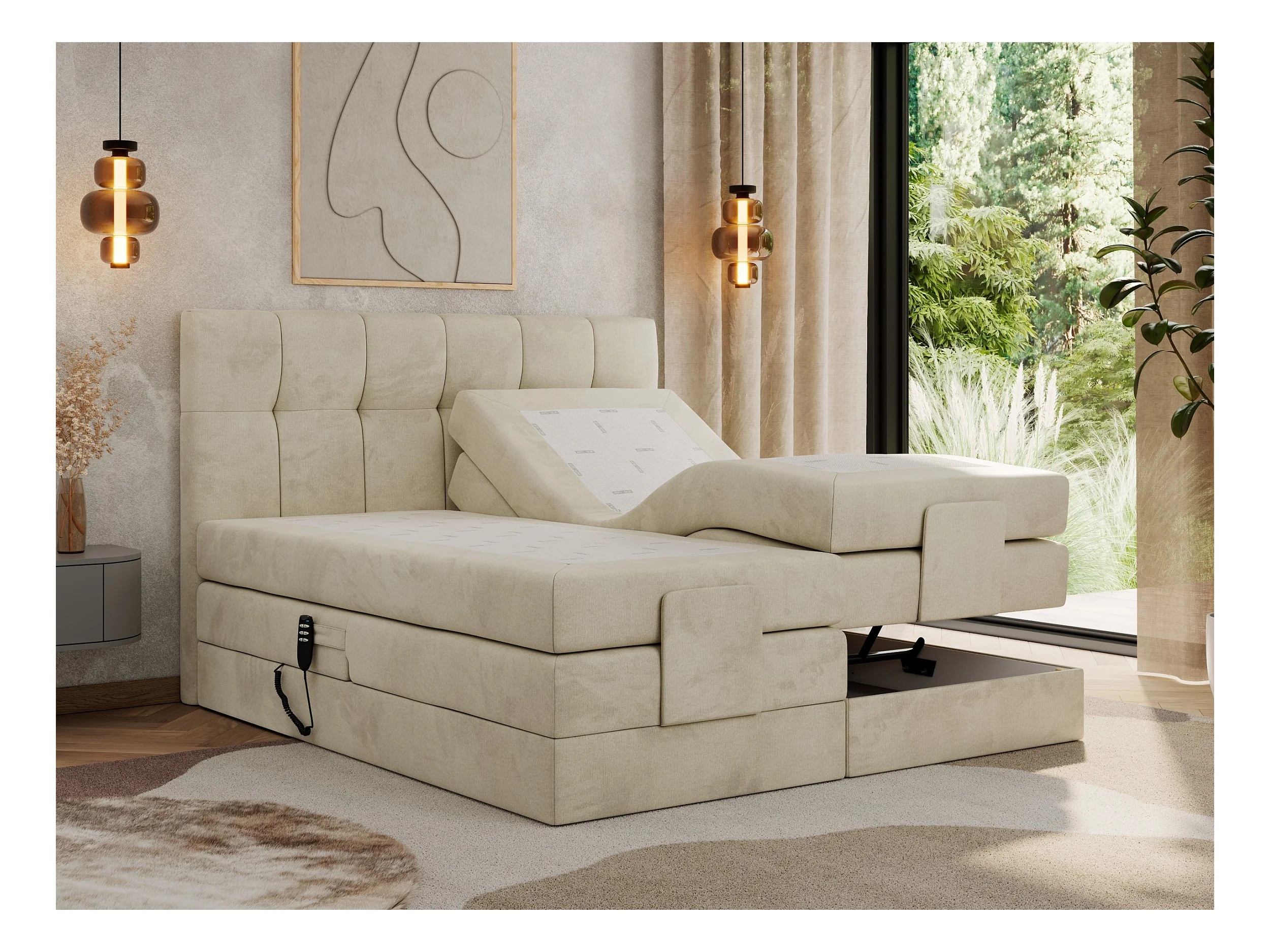 Boxspringbett VITTORIA - mit gestepptem Kopfteil, elektrischem Untergestell, Multipocket-Matratze - 180x200 cm - H3 - Beige Velvet