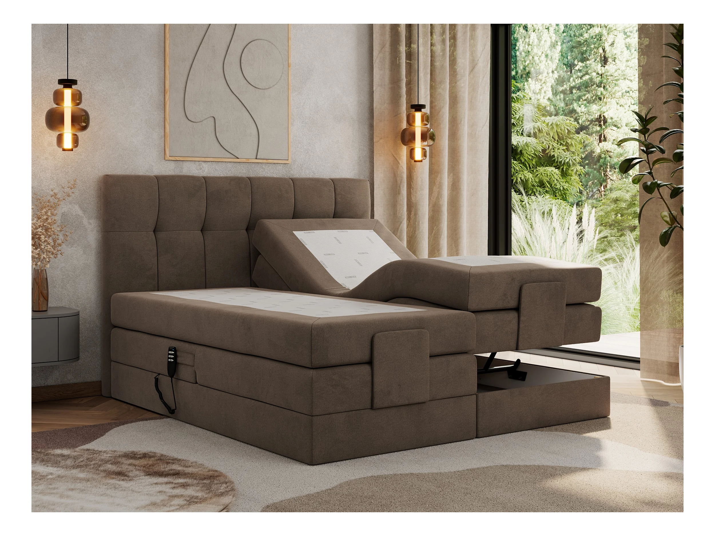 Boxspringbett VITTORIA - mit gestepptem Kopfteil, elektrischem Untergestell, Multipocket-Matratze - 180x200 cm - H3 - Braun Velvet