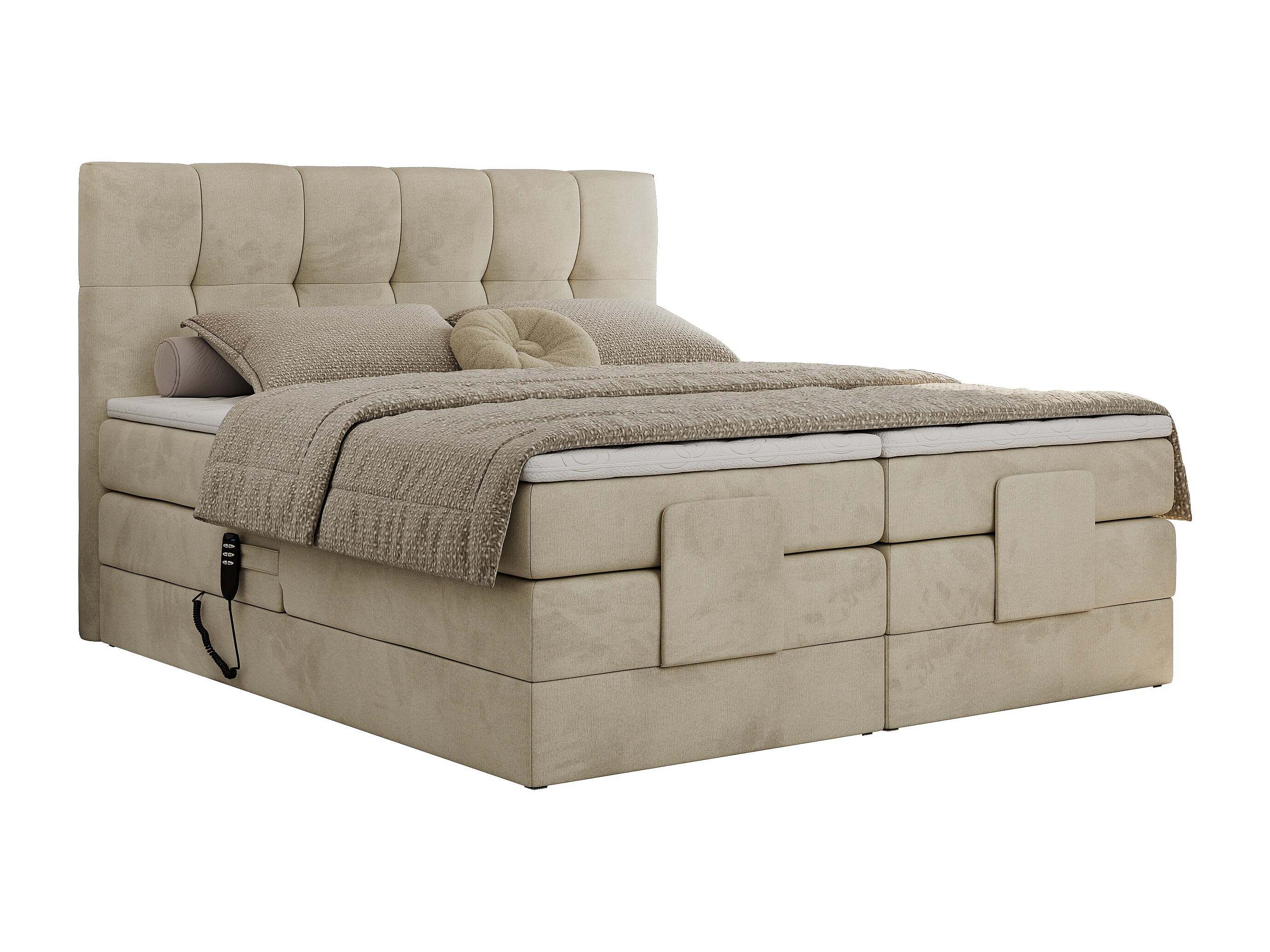 Boxspringbett VITTORIA - mit gestepptem Kopfteil, elektrischem Untergestell, Multipocket-Matratze - 180x200 cm - H4 - Beige Velvet