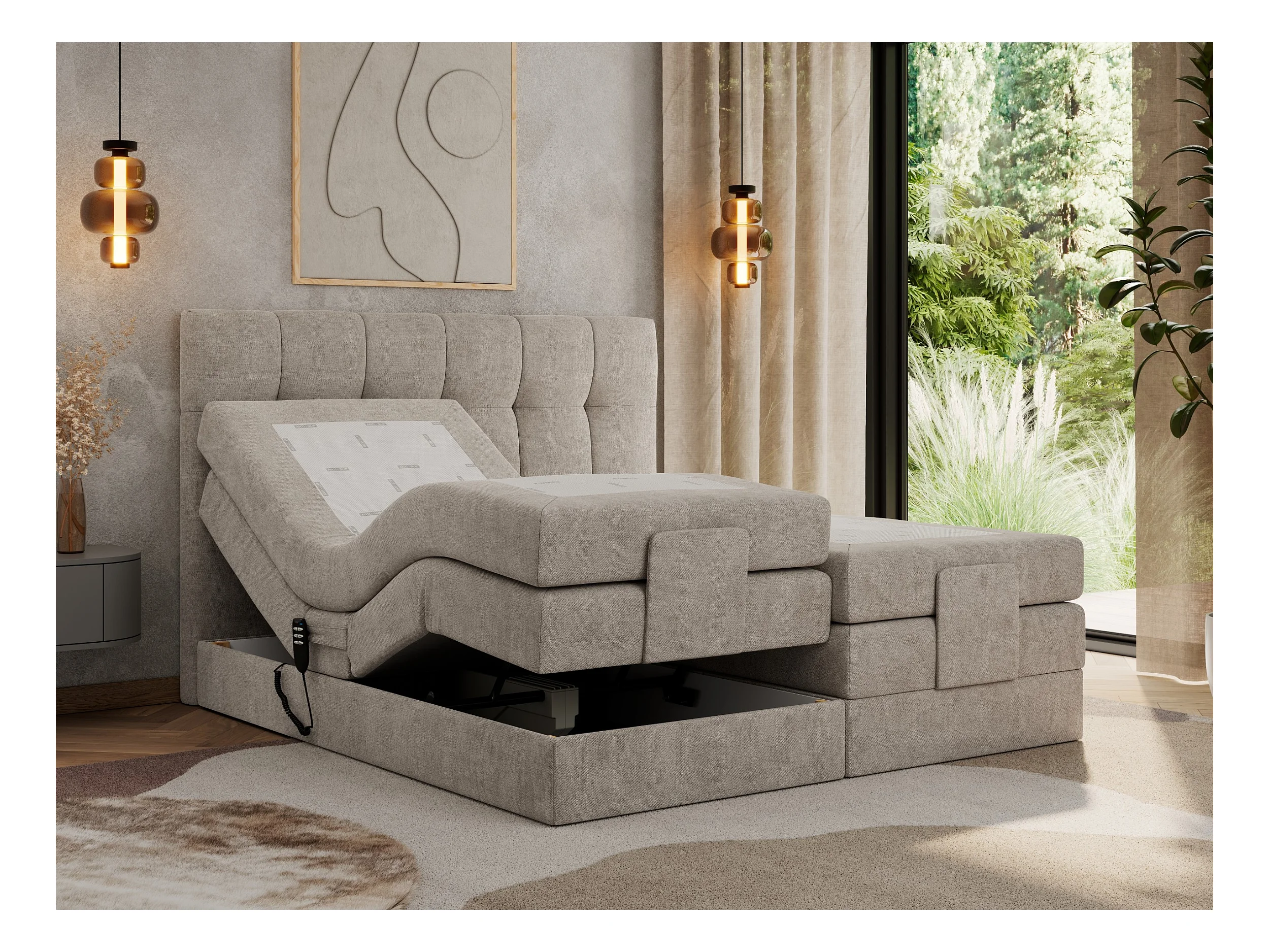 Boxspringbett VITTORIA - mit gestepptem Kopfteil, elektrischem Untergestell, Multipocket-Matratze - 200x200 cm - H3 - Beige Strukture