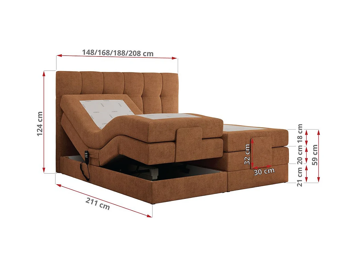 Boxspringbett VITTORIA - mit gestepptem Kopfteil, elektrischem Untergestell, Multipocket-Matratze - 200x200 cm - H3 - Orange Strukture
