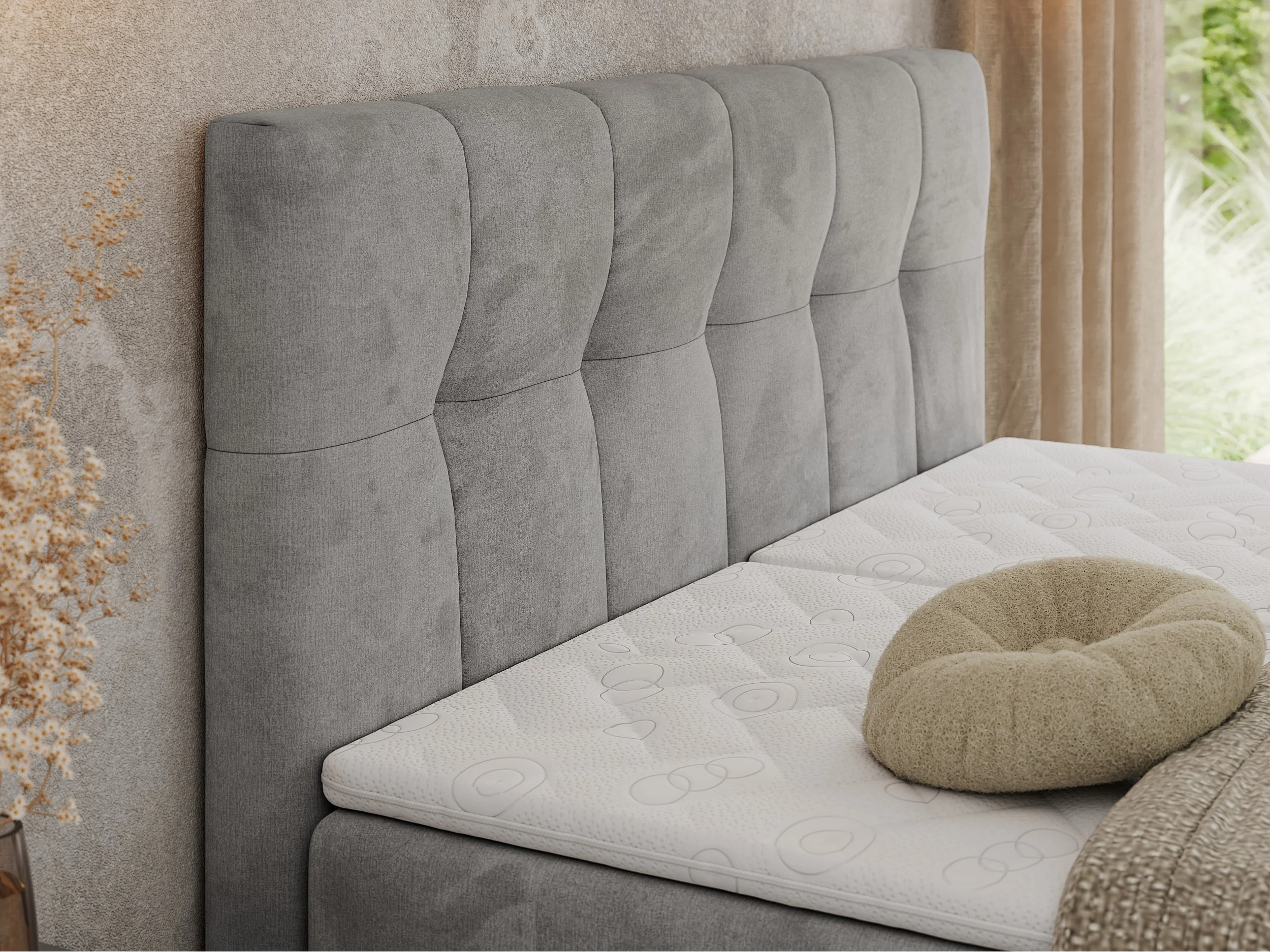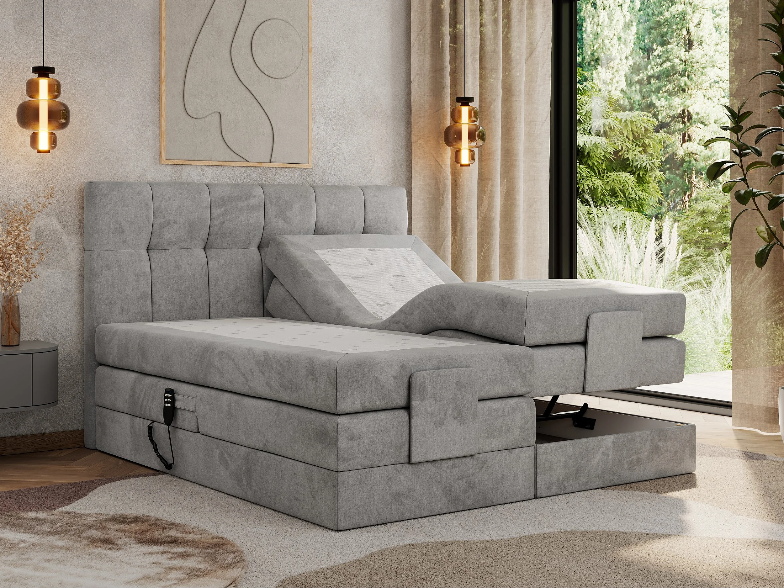 Boxspringbett VITTORIA - mit gestepptem Kopfteil, elektrischem Untergestell, Multipocket-Matratze - 200x200 cm - H4 - Hellgrau Velvet
