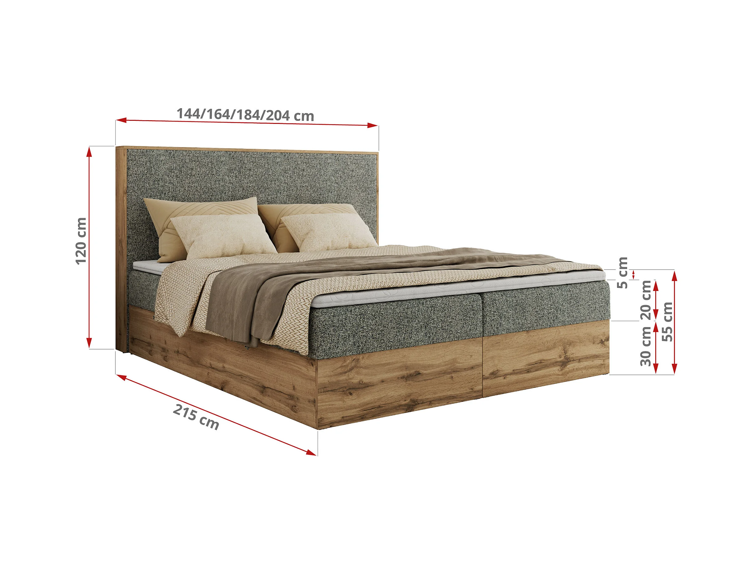 Boxspringbett WOOD CLASSIC - Doppelbett für Schlafzimmer, Set mit Multipocket-Matratze, Holzrahmen - 160x200 cm - H3 - Grau Strukture