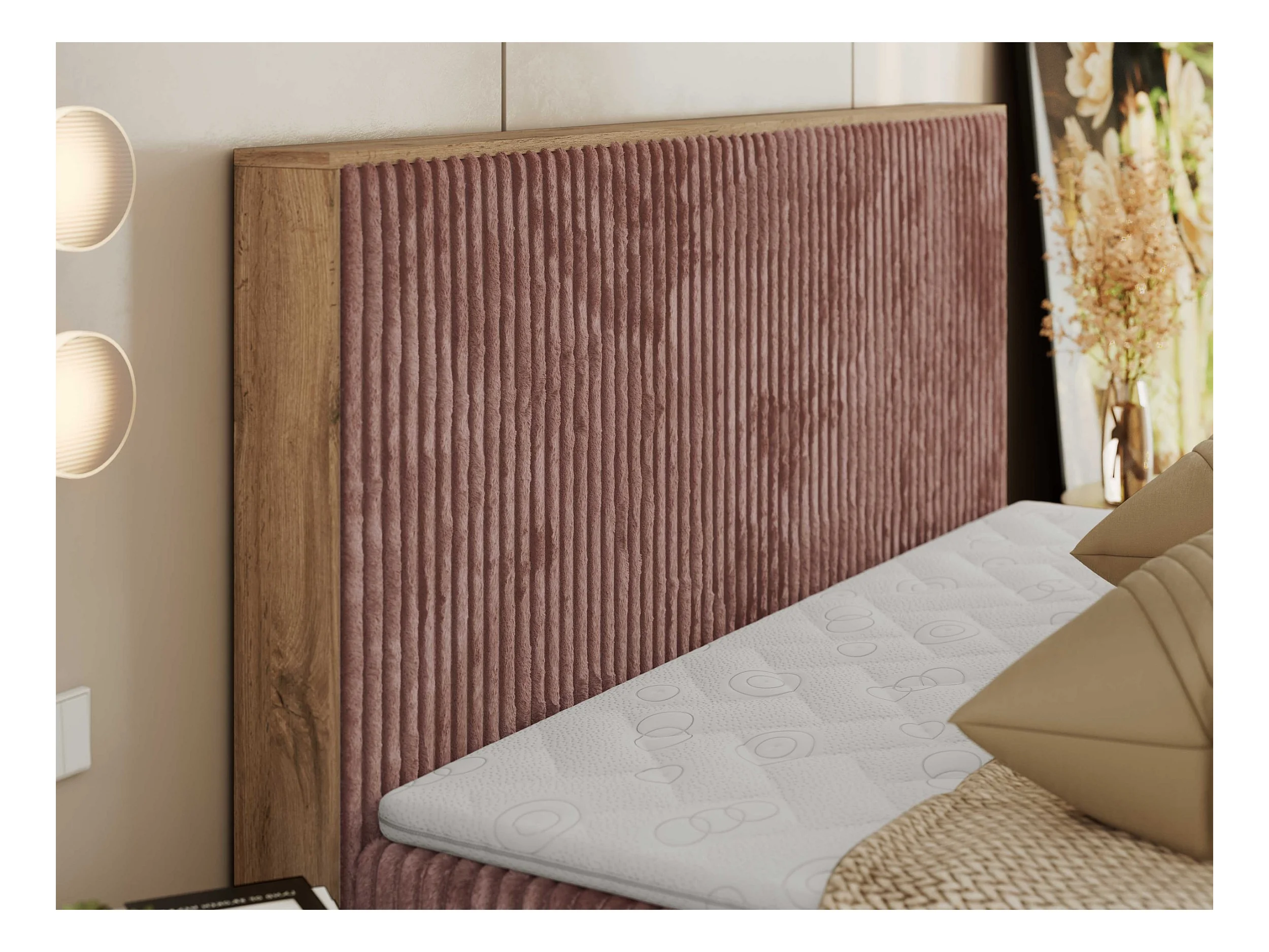 Boxspringbett WOOD CLASSIC - Doppelbett für Schlafzimmer, Set mit Multipocket-Matratze, Holzrahmen - 180x200 cm - H3 - Rosa Cord